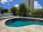 Available in November: Spacious two bedroom/one and a half bath corner unit located in the heart of Waikiki at Twin Towers. Only four units per floor. This 9th floor unit includes laminate wood flooring, stacked washer/dryer, and a full kitchen with new dishwasher. Freshly painted with two newly installed toilets and one new bathroom vanity and sink. Enjoy cool breezes and beautiful views of the Ala Wai Golf Course, mountains, and city from your very own lanai. An inviting pool on the property awaits. Unit comes with one secured covered parking stall in the gated basement. Height limitation is 6 feet. Located just minutes from shopping centers, restaurants, retail shops, and beautiful Waikiki Beach. Rent includes sewer, hot water, and trash. Tenant responsible for electricity, cable/internet, and window coverings. No pets or smoking. Long-term lease only. Renters insurance required. Application fee: $23 per adult. Apply at: Must view in-person or virtually before submitting an application.