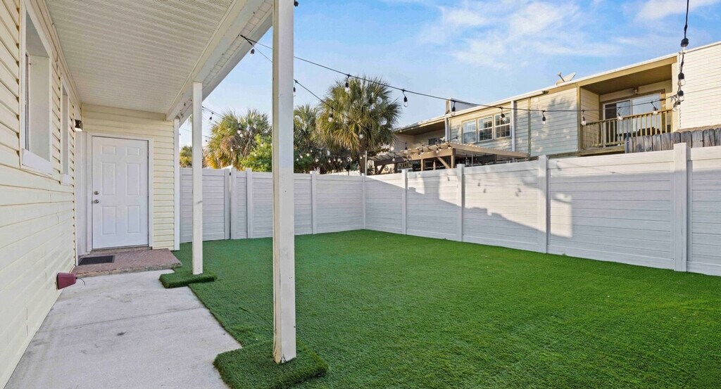 The advertised rate of $5,754/month is the lowest available price, based on a 30 day(s) stay with a move-in date of July 18, 2026. Rates vary depending on the duration of stay, season, and other parameters. For exact pricing and additional pricing components, please visit our website and enter your desired move-in and move-out dates. The rate is applicable when billed upfront; it can be higher if billed in multiple payments. Discover The Hangout Beach Cottage, your slice of paradise on Okaloosa Island! This chic retreat is the right side of a charming Original Okaloosa Island Duplex, strategically positioned off Beach Access #1. Feel at home in this charming cottage that offers a relaxed and comfortable environment for your coastal getaway. Inside, you'll find a thoughtfully designed living space that exudes coastal charm. The living room is adorned with modern coastal cottage decor, creating a cozy atmosphere for relaxation and quality time with loved ones. Unwind on the comfortable sofa and enjoy a movie night on the flat-screen TV. The updated charming kitchen features a 2-burner induction cooktop, small fryer convection oven, and a compact fridge (no ice maker). The kitchen is fully stocked with cookware, dish ware, and coffee mugs. Step outside to your private oasis—a spacious backyard that's fully fenced for privacy. The front yard is also partially fenced, providing an additional outdoor space for relaxation. Guests will have access to a private driveway with parking space for up to 4 vehicles and complimentary high-speed internet access throughout your stay. Pets are welcome with a pet fee of $100.00. Nestled in a delightful beachside neighborhood, The Hangout is located just a quarter mile off Beach Access #1, a short stroll away from the stunning sugar-white sands and emerald-green waters of the Gulf of Mexico. The cottage enjoys a prime location right behind Stewby's, a popular local seafood spot. The neighborhood is dotted with charming shops and boutiques where you can browse for souvenirs and beachwear. Okaloosa Island offers plenty of entertainment options, and grocery stores and essential amenities are just a short drive away. Guest agrees to pay a $500 smoke damage cleaning fee if any sign or smell of smoke is encountered. Guests who bring a pet or pets without approval will be charged a $300 pet fee and immediately evicted from the property without refund for the remaining days on reservation. Only the specific number of guests noted in the booking are allowed on premises unless approved in writing. If the guest exceeds the occupancy noted in the reservation, all guests and/or visitors to the property will be immediately evicted without refund for unused days remaining. The guest also agrees to pay a charge of $20 per person per day for every visitor not identified by the guest in the reservation. [SI]