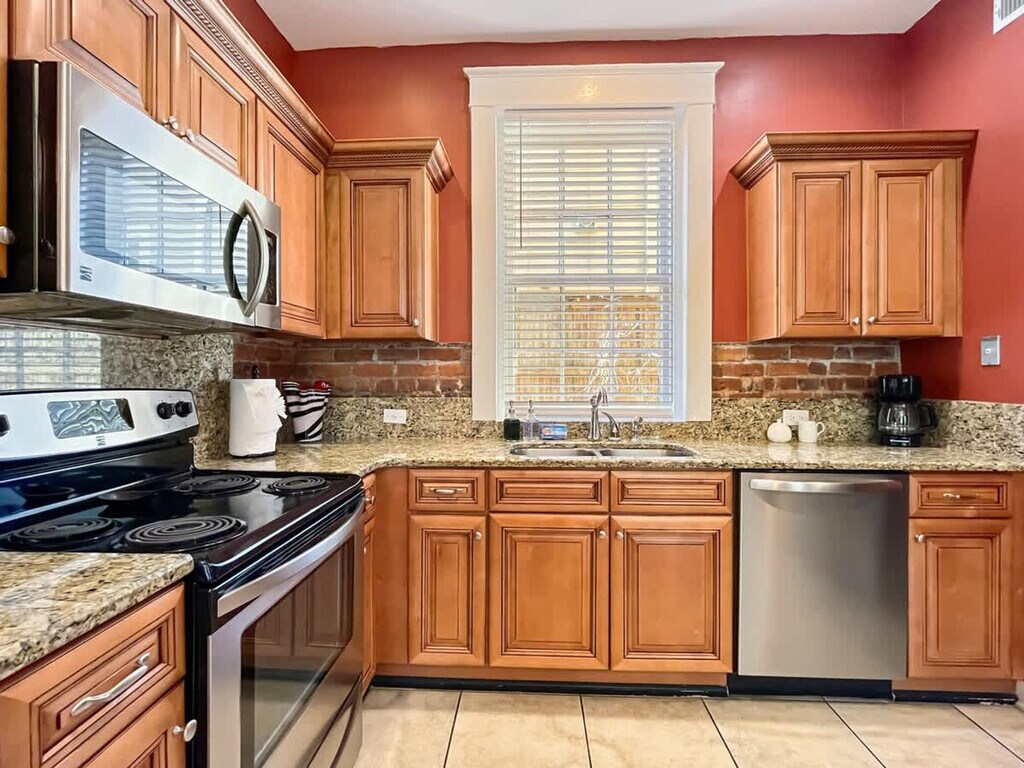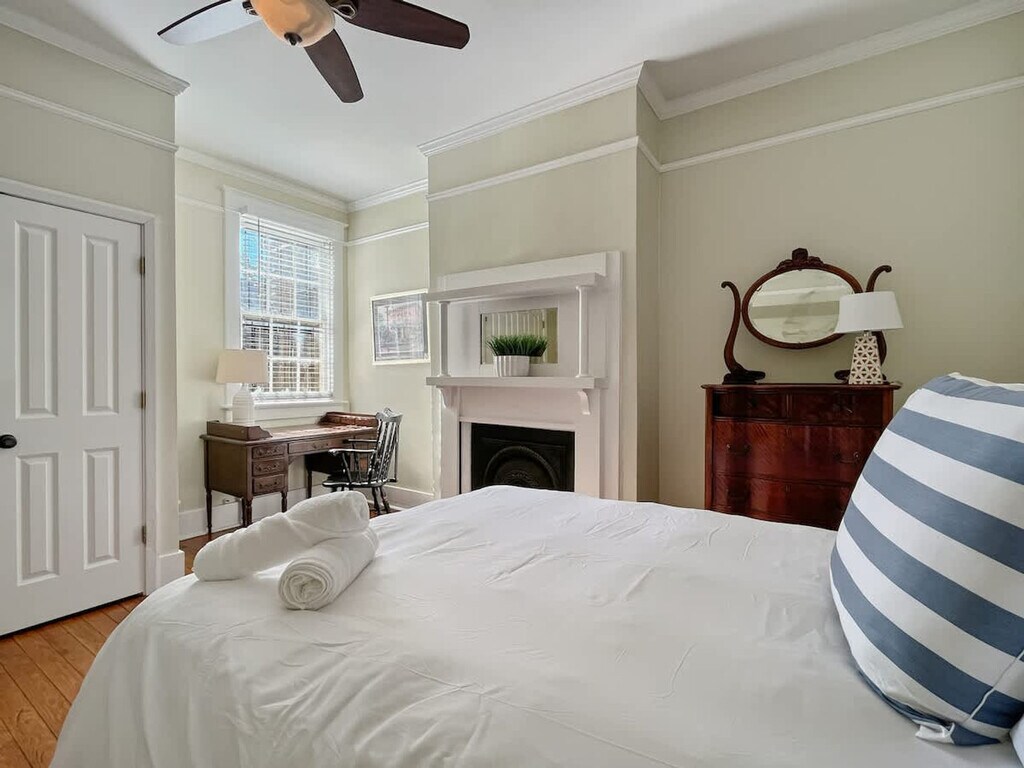 Feel at home in this beautifully designed garden-level retreat in the heart of Savannah, offering a spacious and comfortable stay for up to 6 guests. This estate features 2 cozy bedrooms, one with 2 queen beds and another with a queen bed, along with 2 full bathrooms. The fully equipped kitchen boasts granite countertops, stainless steel appliances, and everything needed to cook a delicious meal. Relaxation spaces include a comfortable living room and a breakfast nook. An in-unit washer and dryer are available for your convenience. Early check-in is available for a fee of $35 if the check-in time is between 12:00 PM and 3:00 PM, subject to availability, the cleaning schedule, and whether there is a guest checking out on the same day as your arrival. Early check-in can only be confirmed by the end of the day prior to your scheduled check-in date. The early check-in fee will be requested and processed through the booking platform. Nestled just steps from the vibrant streets of historic downtown Savannah, you'll be immersed in Southern charm and endless activities. Savor local favorites like Local Ten Eleven, Leoci’s, and The Mansion on Forsyth. Enjoy jazz festivals, free concerts, and trolley tours nearby. Stroll to The Sentient Bean, Brighter Day, or Kroger in just a minute's drive. Walk to iconic River Street or take a quick 20-minute drive to the sandy shores of Tybee Island. The apartment is 5 minutes away from Forsyth Park. Free on-street parking is available on Bolton Street and Barnard Street, both conveniently located nearby. Please be respectful of the property and the neighbors, as this is a quiet family neighborhood. Refrain from outdoor noise from 9:00 PM to 8:00 AM. Smoking or vaping of any kind is not allowed, and a $200 fee will be charged if evidence is found in your home. No parties or events are allowed. Locals must contact the host prior to booking and let them know that they are locals. Please leave all common areas clean and as you found them when you arrived, including washing your dishes and leaving the kitchen area clean. No food or drinks are allowed in the bedrooms. Early check-ins or late departures without prior approval are not allowed, and no refunds are issued for late check-in or early departure. Guests should be responsive and reachable through the platform from the time the reservation is made through the completion of their stay. Please do not use the provided towels to remove make-up or clean something that could stain them, or you could be subject to an extra cleaning fee. No pets are allowed. The property requires identity verification and a completed profile. The minimum age to reserve is 25 years old, and the maximum occupancy is 6 guests. [SI]
