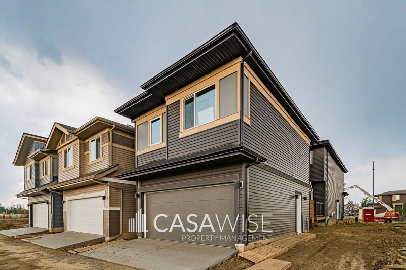 NEWLY BUILT 3Bed/2.5Bath Main Floor Unit With a Double Garage! ? Bright and functional open-concept layout! ? Three spacious bedrooms: Comfortable layouts with cozy carpet flooring. ? Master bedroom includes a private ensuite with a 5' glass shower and walk-in closet. ? Additional full bathroom on the upper level and convenient main floor half bath. ? Stylish finishes with tile flooring. ? Vinyl plank flooring in main living areas. ? Stainless steel kitchen appliances included. ? Quartz countertops throughout. ? Soft-closing cabinetry for a polished look. ? 9' ceilings on the main floor for an open, airy feel. ? Full-size white washer and dryer. ? Double rear detached garage. Snow removal and lawn maintenance are tenants responsibility. ? The basement is being rented out separately. Located just minutes from schools, this area offers easy access to Anthony Henday for quick commutes to Windermere and West Edmonton Mall. Enjoy scenic walking paths nearby, along with the convenience of upcoming commercial developments—including a Petro Canada, A&W, and more on the way! Fixed utility fee of $350/month (includes heat, water, and power). Additional fees may apply depending on the number of occupants. One small pet is negotiable with a fee of $50/month. Pet approval is at the time of the application and not guaranteed thereafter. No Smoking. Professionally managed by Casawise Property Management. Only applications received through our site will be processed: If interested, please provide us with your name, phone number, available times for viewings and a little background about you (when do you need the unit for, how many people would be living in the unit, etc.). Thank you! Side note: Seasonal items, including but not limited to landscaping, decks, fences, and sidewalks, are not guaranteed. They are subject to the owner and builder approval, as well as weather conditions and contractor availability.