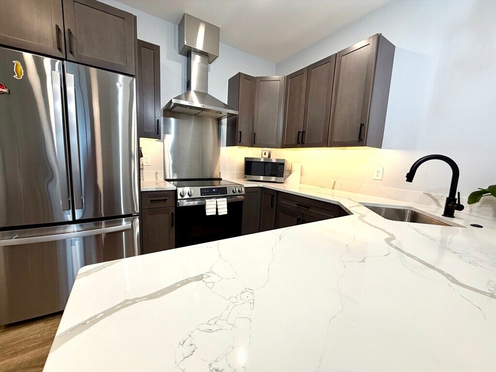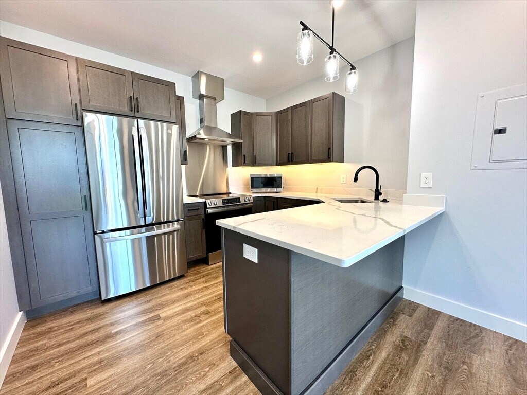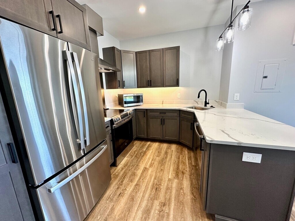 BRAND NEW boutique,mixed-use building in downtown Natick. Unit 302 is a south facing,corner unit. Kitchen has soft-closing cabinets (w/ under lighting),QUARTZ counters,STAINLESS STEEL appliances,center island & an open floor plan w/ high ceilings,LVP flooring,recessed lighting & big windows. IN-UNIT WASHER AND DRYER. Central forced air heat & COOLING. PET FREINDLY BUILDING. Rent INCLUDES water,sewer,hot water,trash & recycling (tenant to pay only electricity). There is no additional storge space at the building. Snow and ice melt away w/ RADIANT HEATED walk way & driveway. Relax on the ROOF DECK with furniture and grill provided by the owner. NO PARKING SPACES AVAILABLE. The ground level is commercal space w/ future businesses to open & there are 3 upper levels floors with apartments. Great location close to other shops,restaurants,MBTA service,the Common,weekend farmers market & more. MLS# 73473209