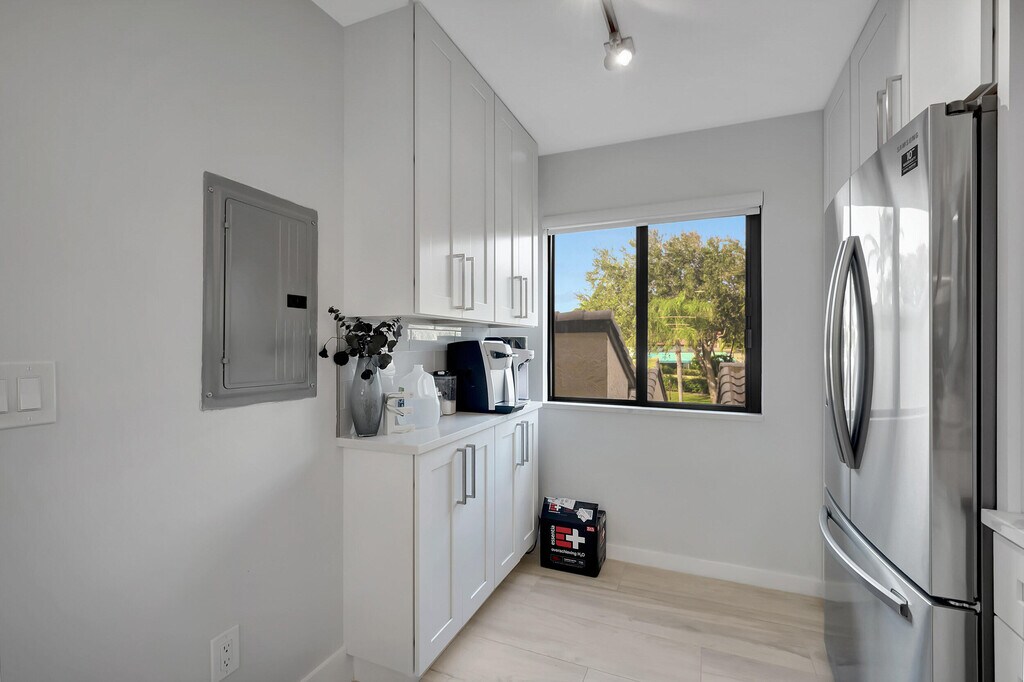 Fabulously Renovated Rental with Serene Water Views! Tucked away in an amenity-rich and guard-gated community just moments from the beach and restaurants, this 2BR/2.5BA, 1,512sqft rental townhome satisfies contemporary needs with a plethora of desirable features. Completely remodeled to interior design perfection, the entertainment-friendly residence welcomes with gorgeous Italian porcelain tile floors, recessed lighting, modern paint hues, ultra-chic furnishings, an organically flowing layout, and a spacious living room boasting sliding glass doors to the covered balcony. Stunning views of the intracoastal waterway may be admired year-round from this private outdoor space. Enjoy the culinary arts in the reimagined gourmet kitchen, which has stainless-steel appliances, quartz countertops, white shaker cabinets, an electric stove, a built-in microwave, a dishwasher, a French door refrigerator, a breakfast bar, a coffee bar, and an adjoining dining area. Blissful mornings are discovered in the main primary bedroom with ample closet space, balcony access, water views, vaulted ceilings, and a spainspired en suite featuring dual sinks and an oversized shower. One additional bedroom accommodates guests with generous amounts of comfort and a dedicated en suite. Other features: assigned covered parking space, in-unit W/D, hurricane impact windows/doors, community clubhouse, two heated pools, gym, lighted tennis court, and a marina, and more! Call now for a tour!