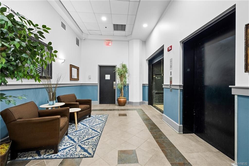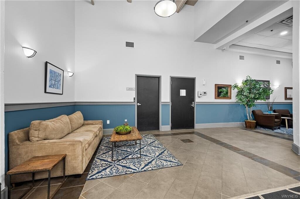 Live at the center of it all in this stylish and spacious 2-bedroom,2-bathroom condo,offering a well-designed layout that blends comfort and functionality. Step inside to discover a bright and inviting unit filled with natural light streaming through large windows,highlighted by soaring ceilings. The updated kitchen features stainless steel appliances,custom cabinetry,granite countertops,and a breakfast bar that seamlessly connects to the open living area. A cozy fireplace anchors the space,making it ideal for relaxed evenings or lively gatherings with friends. Convenience meets comfort right at the entry,where you'll find an in-unit washer and dryer along with a full guest bathroom. Toward the back of the unit are two spacious bedrooms,including a serene primary suite complete with its own private full bath—offering a perfect retreat. Additional features include secure front entry,a generously sized private storage unit in the basement,and two dedicated parking spots in a gated lot. Just steps away from Buffalo’s best restaurants,entertainment,and waterfront attractions,don’t miss your chance to own a piece of the city’s energy and charm in this stunning condo. Some photos are virtually staged.