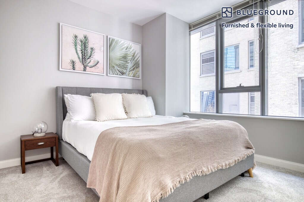 Discover the best of Chicago, with this one bedroom apartment in The Loop with views over the city. It’ll be easy to simply show up and start living in this furnished apartment with its fully equipped kitchen, living room, and our dedicated, on-the-ground support. (ID #CHI212) The advertised rate of $1,380/month is the lowest available price, based on a 1 month(s) and 24 day(s) stay with a move-in date of January 27, 2026. If you’re looking for a 1-year stay, the rate is $2,510/month. Rates vary depending on the duration of stay, season, and other parameters. For exact pricing and additional pricing components, please visit our website and enter your desired move-in and move-out dates. The rate is applicable when billed upfront; it can be higher if billed in multiple payments. Brokers are welcome to reach out. Were you looking for an unfurnished lease? Try Blueground instead and upgrade from unfurnished to furnished living: - Furnished at rates comparable to unfurnished - No setup or furniture costs - save thousands - Move-in ready - save time, just bring your suitcase Designed with you in mind Thoughtfully designed with bespoke finishes, modern furnishings, and a fully equipped kitchen, you’ll enjoy that “I’m home” feeling with this Blueground apartment. Whether you’re lounging in your cozy living room streaming the latest and greatest entertainment on the smart TV or premium wireless speaker, or getting some well-earned rest on the superior quality mattress with luxury linens, you’ll fall in love with everything this The Loop apartment has to offer. This apartment also offers in-apartment laundry. Sleeping arrangements King Bed, 70.8in/180cm Amenities Building amenities unique to this one bedroom apartment include an on-site: - BBQ Area - Doorman - Dryer - Elevator - Swimming pool - Washing machine - Lounge - Pets allowed Arrival and ongoing support The entire apartment is yours to enjoy! Throughout your stay, you’ll have access to our Client Experience team through the Blueground App. You can schedule additional cleanings, submit maintenance requests, and view our neighborhood recommendations with just a few taps. We’ll share all details upon confirmation of your stay. Ideally Located This furnished rental is situated in the most dynamic and convenient place to live in Chicago, The Loop. With its endless shopping, fine dining, stunning park, river and lake views, and entertainment opportunities, everything is possible at a moment’s notice. The area is a cultural getaway for professionals and students, who can combine work with pleasure. Discover landmark buildings like the Willis Tower and The Art Institute of Chicago. Millenium Park, near Lake Michigan, is always worth a visit. The Loop is within reach of accessible transportation, offering non-stop public transit, buses, and taxis. Union Station is approximately a 10 minute train ride. Other things to note Building amenities may have an extra cost. This Blueground apartment has flexible lease options, allowing you to book it for one month, a year, or more. Pets are welcome, though weight limits and breed restrictions apply and may incur fees. We take great pride in ensuring every photo displayed is shot in our own units with our actual furnishings. That said, we regularly refresh our decor and furniture arrangement, which may differ from what’s pictured. Also note - This apartment's central location means it can be noisy at times - This apartment is located near a railway, so expect to hear moderate noise when trains pass - This is a guarded building equipped with a doorman/concierge at all times [SI]