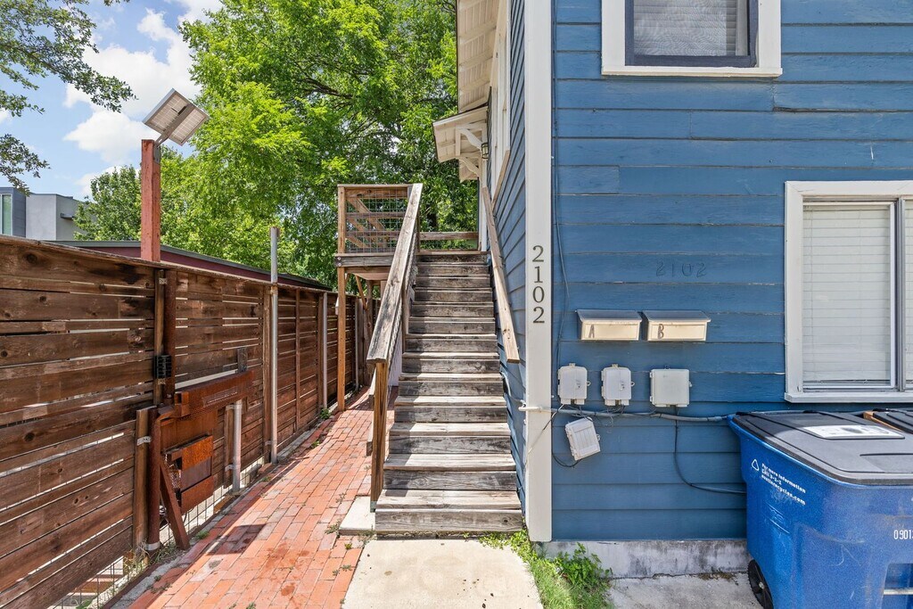 Charming split level duplex in the heart of Travis Heights. Both units offer a one-bedroom, one-bathroom apartments with their private entrance at 2102 Brackenridge. Washer and dryer are on the ground level and shared between both units. Unit A enjoys a private balcony, while Unit B enjoys a gated, yard space. Located just minutes from South Congress, conveniently close to major highways, downtown and the airport. **Contact Agent for showings, Laura .** This property allows self guided viewing without an appointment. Contact for details.