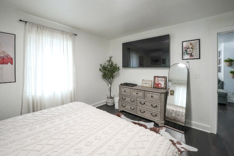 Property Id: 2108554 Modern 2 bed, 2 bath apartment near downtown Nashville, fully furnished and designed for comfort. Bedroom 1 features a king bed and an attached full bath. Bedroom 2 features twin bunk beds and a full bed, accompanied by a detached full bathroom located just outside the hallway. Enjoy a fully equipped kitchen, in-unit laundry facilities, a private entrance, and off-street parking. Centrally located near hospitals and major employers, ideal for mid-term stays.