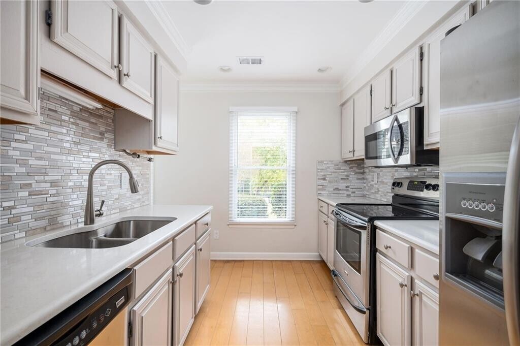 This exceptionally roomy townhome offers an open and inviting floorplan in an incredibly convenient location. The kitchen has been recently renovated and now showcases brand new quartz countertops,a chic backsplash,and stainless steel appliances. It seamlessly flows into a generous living area,complete with a cozy fireplace and a sunroom that fills the space with natural light. The interior has been freshly painted in tasteful,designer-neutral colors. A private backyard adds to the charm,and the split bedroom layout,each with its own full bath,makes it an ideal roommate arrangement. This home is just minutes away from I-285,Smyrna Market Village,Vinings Jubilee,the Silver Comet Trail,and a wealth of other amenities.