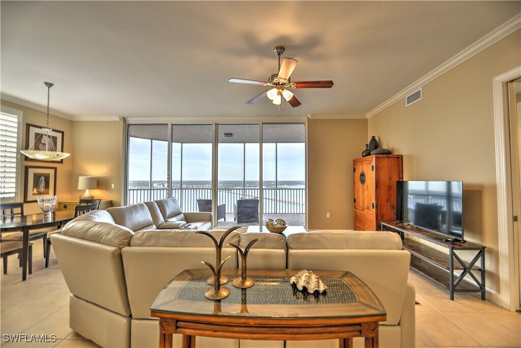Perched on the 14th floor overlooking the Caloosahatchee River,this impeccably remodeled 3-bedroom,2-bath residence offers a refined blend of luxury,comfort,and panoramic views. From sweeping sunsets to the sparkling yacht basin and downtown Fort Myers skyline,every glance from your private lanai captures the beauty of waterfront living. The open-concept floor plan features designer finishes,fresh paint,custom wall trim,and rich wood flooring throughout. Elegant tray ceilings and Restoration Hardware lighting add a sophisticated touch,while large windows fill the space with natural light. The gourmet kitchen is fully equipped with premium appliances,ample cabinetry,and a built-in Miele coffee machine—perfect for everyday living or entertaining. The primary suite provides a tranquil retreat with river views,a spa-like en-suite bath,and a generous walk-in closet. Two additional bedrooms offer flexibility for guests,a home office,or hobbies. A new Samsung washer and dryer add convenience to this move-in-ready home. Enjoy the ease of assigned garage parking (with the option for a second vehicle) plus ample guest parking and a private storage unit. Resort-style amenities include a riverside pool and spa,fitness center,sauna,and bike storage—all designed for a relaxed,low-maintenance lifestyle. Located just minutes from the vibrant downtown Fort Myers River District,you’ll have quick access to fine dining,local shops,entertainment venues,breweries,and seasonal street fairs. Experience riverfront city living at its finest—stylish,comfortable,and ready for you to move in and enjoy.