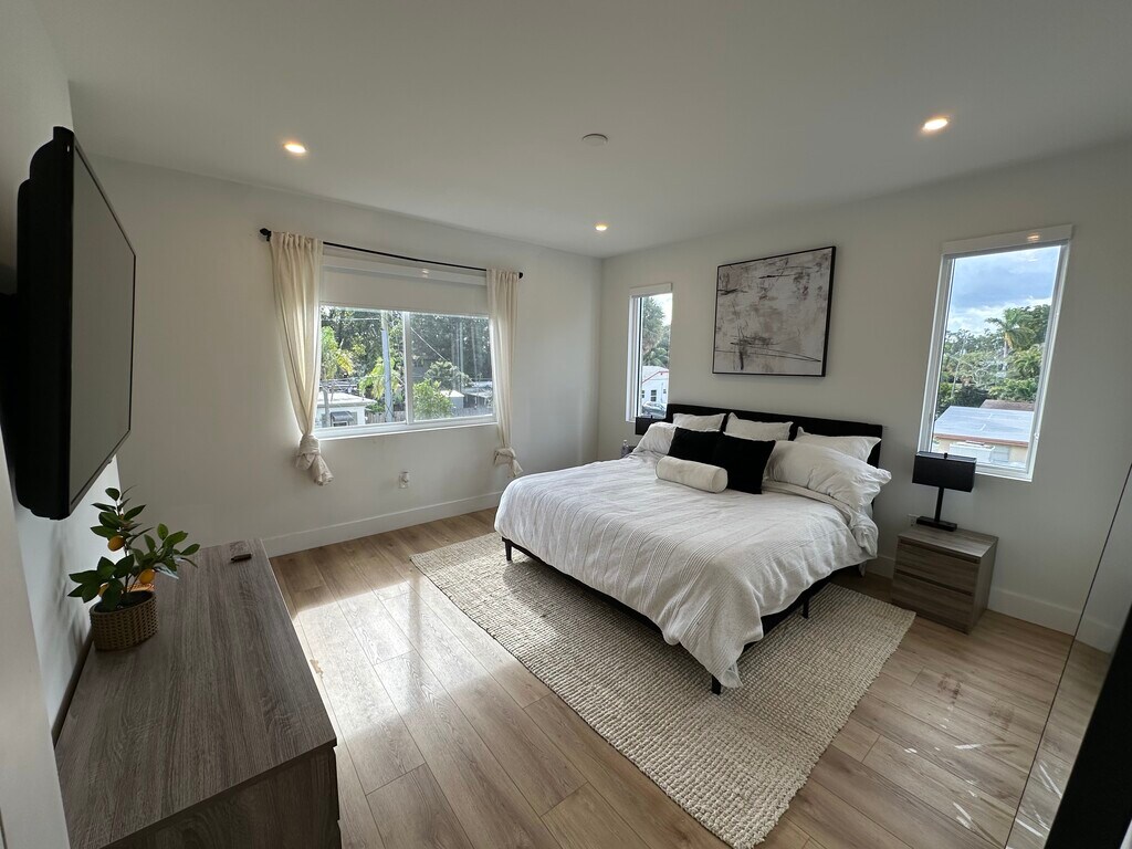 Spacious NEW construction (2024) 3 bedroom, 4 bath luxury property in the beautiful River Oaks community of Fort Lauderdale! Relax or entertain in the sun-drenched first floor living area including a spacious open concept layout with tile floors. Enjoy cooking in your brand new kitchen with high-end smart appliances. Sunbathe or let the dog play in your private fenced yard. Upstairs are three large bedrooms each with their own en suite full modern bathrooms including smart mirrors. The master suite includes a large walk-in closet. Washer and dryer located on second floor for easy access. Secure garage for your vehicle and plentiful street parking for guests. Impact doors and windows throughout. River Oaks is a quiet family-friendly neighborhood located just minutes from downtown FTL, Las Olas, FLL Airport, Port Everglades, marinas and the beach. Easy access to I-95, 595 and Florida Turnpike. Welcome to your new home!