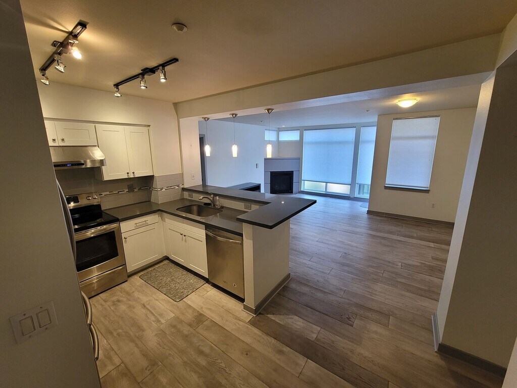 Downtown Kirkland- A few steps to everything including available street parking, 2 side by side secured parking spots, large storage unit. Spacious and bright condo with a view from every room. Deck, granite counter tops, stainless steel appliances, cherry cabinets, tile and carpet floors, fitness center, 24 hour concierge, 2 elevators and picnic patio. On major bus lines. Move-in Fee: $500 One Pet Policy: 1 dog under 30lbs or 1 Cat (pet rent is $20 per month) Tenant pays metered W/S/G, electric & cable/internet through association. You must provide photo ID and proof of income (last 2 paystubs or offer letter) to complete the application. Please be aware applications will not be processed/accepted until you make an appointment to tour the home first.
