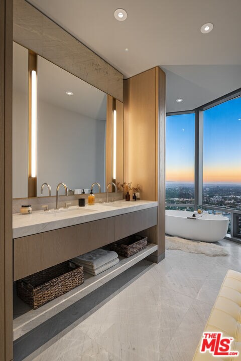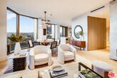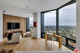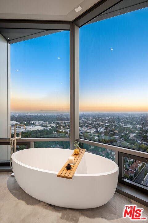 A custom-designed residence by McRae Lambert & Dunn, Residence 26C at the prestigious Century Plaza Park Elm is a one-of-a-kind one-bedroom plus den, offering unparalleled panoramic views to the north and east, facing the Wilshire Corridor and Downtown LA skyline. Upon arrival through a private elevator vestibule, you are welcomed by a grand formal entry foyer that flows into an expansive great room with 10-ft tall floor to ceiling windows. The den features rich walnut paneling and a travertine gas fireplace, creating an atmosphere of warmth and refined sophistication. The Snaidero-designed kitchen is equipped with Miele appliances and a custom slab waterfall island, blending sleek design with exceptional functionality. All rooms have operable windows which is unique in high-rise living. The primary suite offers dual custom Italian-designed closets and a luxurious five-fixture en-suite bath. Smart home features include Dual AC control, a Lutron lighting system and Palladium motorized shades. Residents enjoy world-class amenities including a resort-style pool, state-of-the-art fitness center, steam-equipped locker rooms, screening room, library, game room, personal wine storage, private dining rooms, guard-gated entry, and 24-hour concierge service. MLS# 25580025