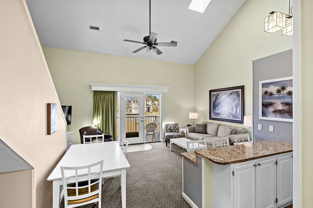 Welcome to Doug's Dune Destination, a family retreat located at Grand Palms of Surfside in the heart of Surfside Beach. Just 1.5 miles from the 16th Ave N beach access, this villa offers plenty of free parking and convenient access to Hwy 17, making it easy to enjoy a night on the town and soak up all that Surfside Beach has to offer. Broadway at the Beach and the Myrtle Beach Boardwalk are only 15 minutes north, while Murrells Inlet, known as the "Seafood Capital of SC," is 15 minutes south. This Grand Palms property is a peaceful retreat away from the cramped beachfront condo scene. Spacious and modern, the villa features 3 beds and 3 full baths, providing plenty of room for the extended family. You can cook gourmet meals in the full-sized and fully stocked kitchen, and enjoy family meals with ample seating. Each guest bedroom has its own private bathroom, with two offering en-suite baths. The villa also includes walk-in closets, premium cable with large flat-screen TVs, complimentary resort Wi-Fi, and a dedicated workspace. Linens for all beds, bath towels, hand towels, and washcloths are provided, along with a roll of paper towels in the kitchen, two rolls of toilet paper per bathroom, hand and dish soaps, and two laundry pods and dish pods, all included with the cleaning fee. Guests are encouraged to bring pool or beach towels. Super light and durable backpack-style beach chairs are available for rent to enhance your stay. Located between Business Hwy 17 and Hwy 17 Bypass, Grand Palms at Deerfield is centrally located in Surfside Beach with easy access to restaurants, shopping, and numerous amenities. Within 3 miles or a 10-minute drive, you'll find three grocery stores, Target, and Walmart. Favorite local restaurants like the Wooden Spoon, Surfside Pizza, The Bar-B-Q House, and Johnny D's Waffles are just around the corner. Additional dining and shopping options are available at the Market Common, perfect for an evening stroll with the family. The property is non-smoking and pets are not permitted. Check-in is between 4:00-10:00 PM and check-out is at 10:00 AM. By state law, occupancy may not exceed 8, including infants and children. Quiet hours are between 11:00 PM and 7:00 AM as per city ordinance. Please do not hang towels or bathing suits on balconies; a dryer is provided in each unit. Charcoal grills are available for use, but portable grills are not permitted on balconies or patios. Parking is available in front of the building without a parking pass requirement. The villa includes a dedicated workspace, complete with complimentary resort Wi-Fi, making it ideal for remote work. [SI]