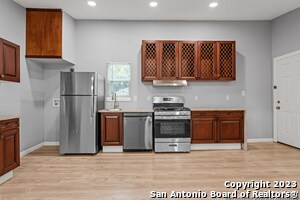 **LOCATION, LOCATION, LOCATION!** This remodeled efficiency is within walking distance to the Pearl Brewery and downtown Riverwalk. It features stainless steel appliances, washer and dryer connections, ceramic tile flooring, and granite countertops throughout. The apartment includes two window air conditioning units and a lovely patio backyard with privacy fencing. There is parking available for two vehicles and room to store your bike. **Qualifications:** - Must have a monthly income of at least three times the rent and good rental history. Pet rent is $75 per pet. Small pets welcomed. Limit of 2.