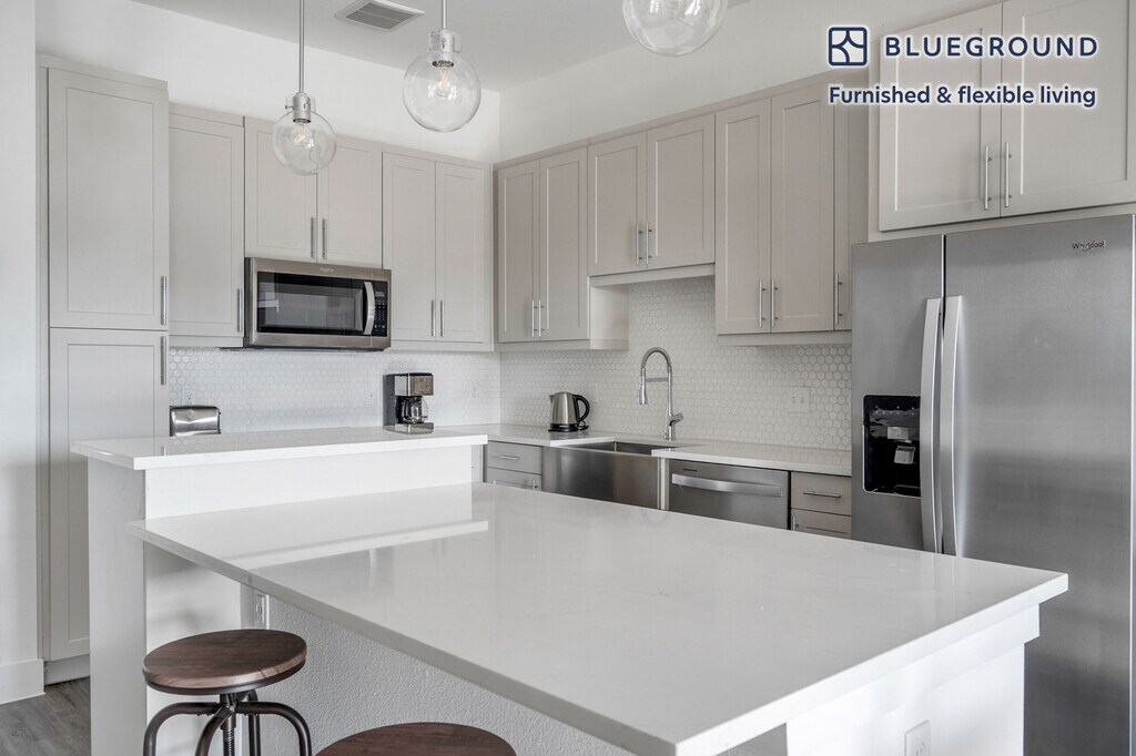 Feel at home wherever you choose to live with Blueground. You’ll love this lovely Highland furnished one bedroom apartment with its modern decor, fully equipped kitchen, and bright living room. Ideally located, you’re close to all the best that Austin has to offer! (ID #ATX199) The advertised rate of $1,290/month is the lowest available price, based on a 1 month(s) and 27 day(s) stay with a move-in date of November 15, 2025. If you’re looking for a 1-year stay, the rate is $1,760/month. Rates vary depending on the duration of stay, season, and other parameters. For exact pricing and additional pricing components, please visit our website and enter your desired move-in and move-out dates. The rate is applicable when billed upfront; it can be higher if billed in multiple payments. Brokers are welcome to reach out. Were you looking for an unfurnished lease? Try Blueground instead and upgrade from unfurnished to furnished living: - Furnished at rates comparable to unfurnished - No setup or furniture costs - save thousands - Move-in ready - save time, just bring your suitcase Designed with you in mind Thoughtfully designed with bespoke finishes, modern furnishings, and a fully equipped kitchen, you’ll enjoy that “I’m home” feeling with this Blueground apartment. Whether you’re lounging in your spacious living room streaming the latest and greatest entertainment on the smart TV or premium wireless speaker, or getting some well-earned rest on the superior quality mattress with luxury linens, you’ll fall in love with everything this Highland apartment has to offer. This apartment also offers in-apartment laundry. Sleeping arrangements Queen Bed, 63in/160cm Amenities Building amenities unique to this one bedroom apartment include an on-site: - Dryer - Elevator - Swimming pool - Washing machine - Parking Arrival and ongoing support The entire apartment is yours to enjoy! Throughout your stay, you’ll have access to our Client Experience team through the Blueground App. You can schedule additional cleanings, submit maintenance requests, and view our neighborhood recommendations with just a few taps. We’ll share all details upon confirmation of your stay. Ideally Located This furnished apartment is located in Highland, which is situated north of downtown Austin. This family friendly neighborhood has great schools and a variety of things to see and do. Shops and restaurants are clustered along Airport Road and North Lamar Boulevard. Highland's culinary scene includes everything from fast casual fare to family style grills to a revolving sushi restaurant. There's also a movie theater, Galaxy Theatres Austin. Other things to note Building amenities may have an extra cost. This Blueground apartment has flexible lease options, allowing you to book it for one month, a year, or more. Parking is offered based on availability and is subject to a fee. We take great pride in ensuring every photo displayed is shot in our own units with our actual furnishings. That said, we regularly refresh our decor and furniture arrangement, which may differ from what’s pictured. [SI]