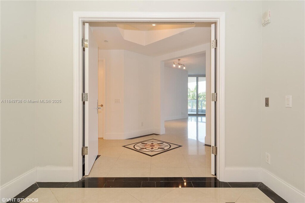 Bright and Spacious 3 bed/3.5bath unit with a private elevator and foyer. Open floor plan, breakfast nook area, 3 separate balconies, porcelain floors throughout, new walk in closets in every bedroom. Laundry room with sink. Inside the exclusive gated condominium The Point, offering a full service spa, swimming pools, tennis courts, library, movie theater, kids play area, and valet service.