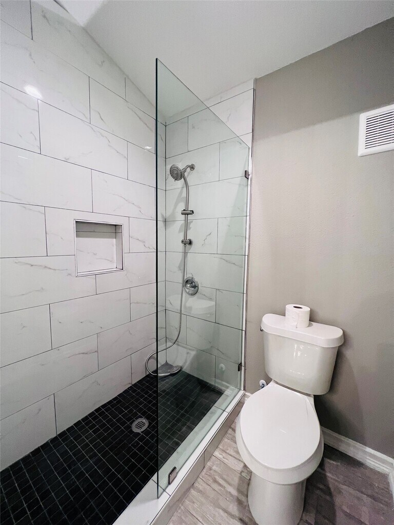 Modern 2 bedroom 1 bathroom condo unit. This beautiful condo unit has all wood floors throughout the unit in a gated community. Stainless steel appliances,stackable washer and dryer located near Texas Medical Center,NRG stadium. Private balcony with storage closet. This is a prefect condo for anyone who wants to live in the medical center. Condo occupied needs 24 hrs. Notice to show. MLS ID 31036700