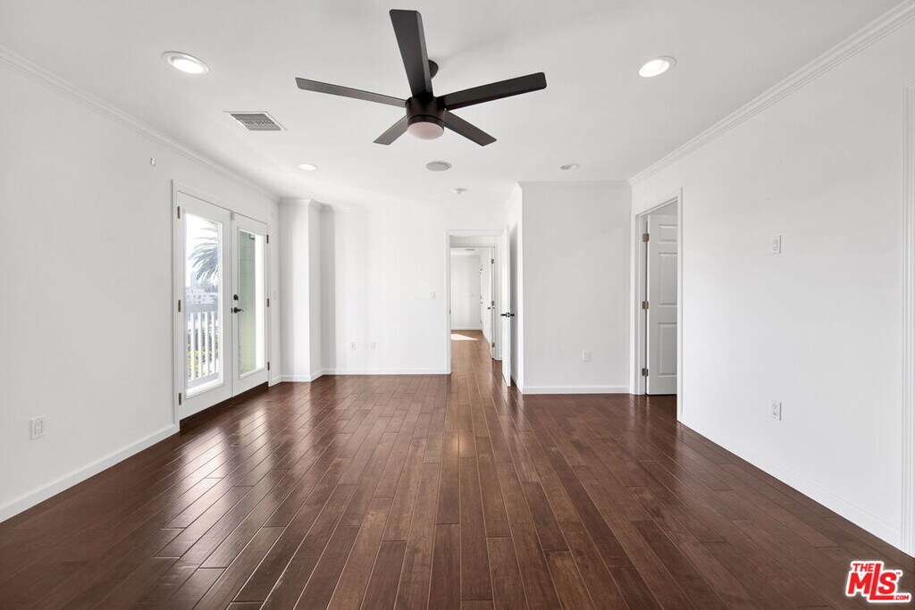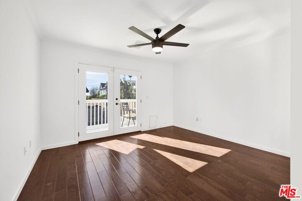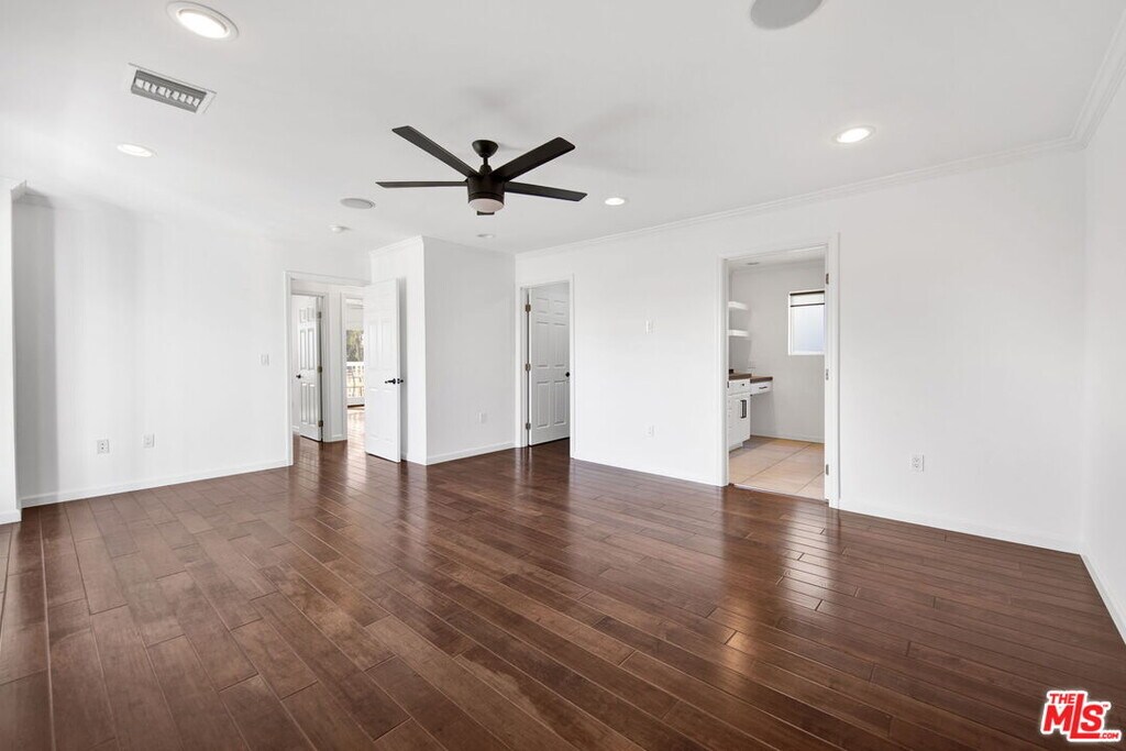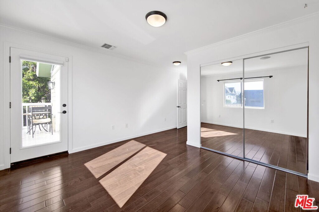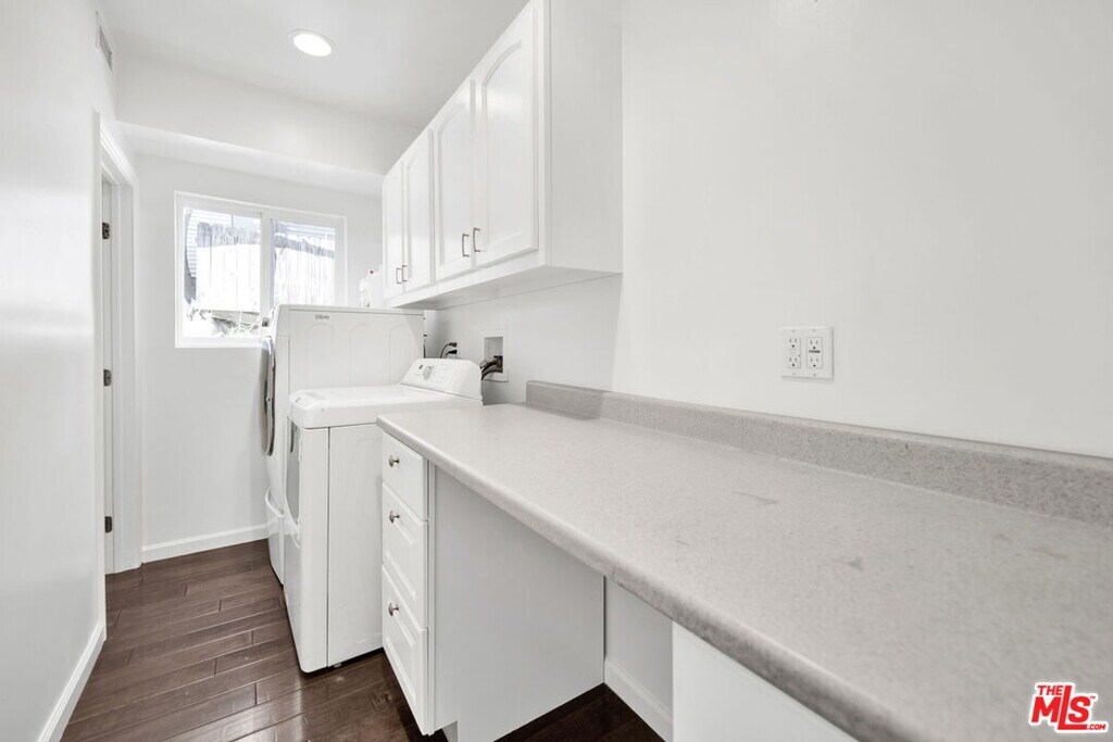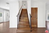 Welcome home to a residence designed for both style and comfort. The journey begins with a large front yard area and a dedicated walkway leading to the entrance, complemented by a charming covered front porch. Inside, you'll find a home that has been upgraded with modern, stylish fixtures. The main living area is perfect for relaxation or hosting, featuring recessed lighting and integrated speakers throughout the ceiling in each room. To ensure your comfort regardless of the season, the house is equipped with two separate HVAC zones, allowing you to control the climate of the first and second floors independently. The heart of the home is a fully equipped kitchen, boasting elegant White Shaker cabinets and premium stainless-steel appliances. An island provides a sleek transition from the kitchen to the dining area. Both of these spaces feature French doors that open onto a large outdoor deck, creating a seamless indoor-outdoor flow. For your convenience, the home also includes a large laundry room complete with built-in cabinets and additional storage area. The outdoor amenities are truly the crown jewel of this property. A massive covered patio area is large enough to host dozens of guests while providing a spectacular view of Downtown LA. Beyond the patio, the huge backyard offers plenty of space for recreational sports or simply soaking in the lovely LA weather. Additionally, the property provides the convenience of covered parking for two cars. All bedrooms are situated on the second floor to ensure a peaceful environment. The primary bedroom is particularly spacious, offering a private balcony and a large walk-in closet. The spa-like experience continues in the bathroom, where you can let your worries fade away under a luxurious waterfall shower equipped with a high-end steam system, designed for ultimate relaxation. Two additional bedrooms are connected by a shared balcony, which also offers spectacular views. MLS# 26640957