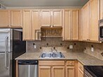 Discover a sense of comfort in this fantastic 2-bedroom, 2-bath condo located on the 3rd floor. The private balcony offers mountain views, and the condo features vaulted ceilings and modern, updated finishes. Feel at home in the light-filled living room, which includes a cozy fireplace and a desk perfect for those who work from home. The kitchen is well-equipped with ample cabinetry, Corian countertops, and stainless appliances. A full-size washer and dryer are conveniently included, enhancing your living experience. The primary bedroom boasts a king-size bed and a private bathroom with a glass shower/tub combo. Parking is stress-free with one covered carport space included. Additional parking is available in the lot and on the street. Dogs up to 35lbs are welcome with approval; unfortunately, cats are not allowed. This condo is ideally situated within walking distance to The Shops at Rigden Farms, offering a grocery store, bank, wine/coffee bar, yoga, shops, and restaurants. Enjoy the added benefits of the community pool and park. To make your arrival easier, a starter welcome packet is provided, including essential supplies. Please note that cleaning supplies are not stocked due to safety issues, and any supplies beyond the initial set are up to the guest to replenish. Includes a desk in the living room, ideal for remote work, ensuring you have a dedicated space to stay productive. [SI]