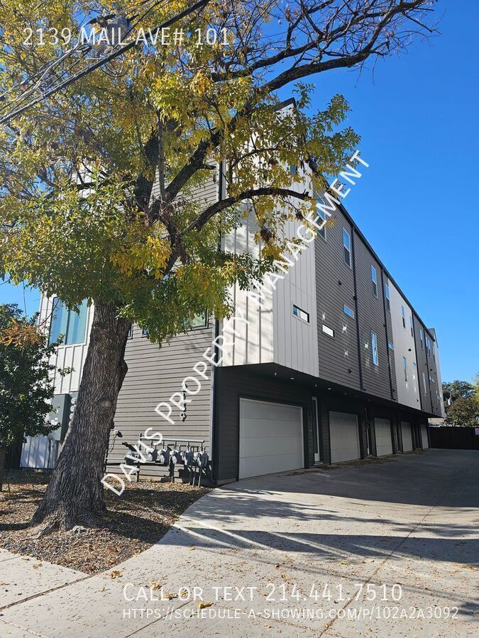 Modern 3 Level no carpet 2 bed, 2.5 bath condo with 2 car garage and small backyard area located in the heart of the Medical District and near Love-Field Airport. 2nd level has tall ceilings, a half bath and open livinng area to kitchen with large quartz countertop island bar with seating, stainless steel appliances and includes many windows with fantastic natural lighting! 3rd level includes full size washer and dryer, a storage closet and 2 bedrooms each with a bathroom.