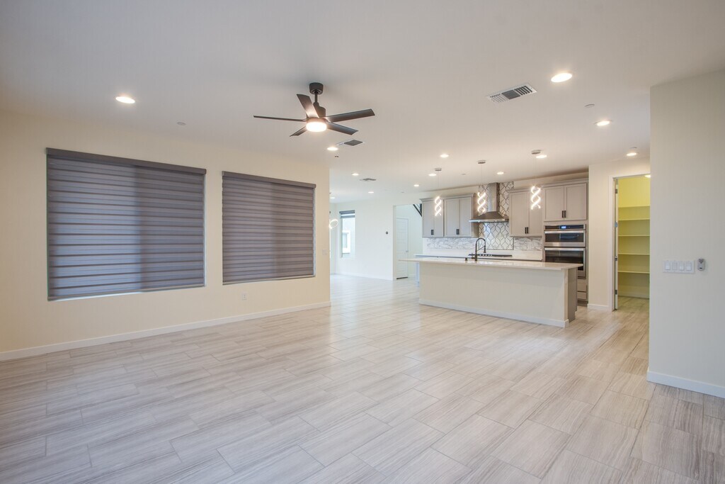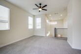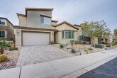 You could be at home nestled at the foothills of Blackrock. Bordering the beautiful Sloan Canyon, this freshly painted, nearly-new contemporary stunner in Pulte's popular La Vista model offers a kitchen upgraded with 42" cabinets, crown moulding, SS appliances, 5-burner gas cooktop and an extended pantry. Center sliding door at dining room overlooks the beautiful, low-maintenance desert landscape of your vast backyard. Primary suite with two walk-in closets and a custom glass walk-in shower with rainshower head. Take in the amazing sunsets with your spectacular view from the balcony. 8' interior doors, custom lighting. Pavers in front and back. Charging outlet for Tesla. Close proximity to The District to direct access to biking trails and hiking in Sloan Canyon. Approved pets are + $35/mo/each, subject to breed restrictions & must adhere to HOA rules. * Note shared attendance schooling zone; verify schools meet your own needs and satisfaction. Owner is a NV licensee.
