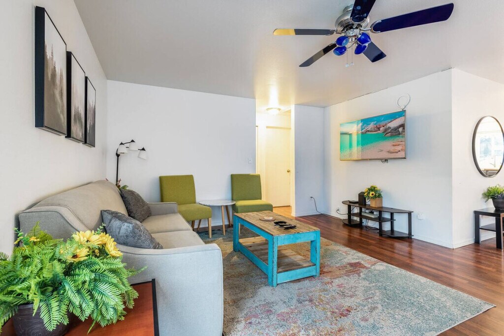 Ideal for a group of traveling nurses or eager college visitors, this single-story abode offers all the household essentials, welcoming modern decor, and easy access to all of Tacoma's local attractions! Indulge in the convenience of a fully furnished private home nestled in Tacoma, Washington. Benefit from close proximity to key locations, including major highways, medical centers, UW-Tacoma, the Convention Center, Tacoma Dome, the Museum of Glass, JBLM, and more. Experience the essence of home with 5R Suites – just bring yourself, and let us take care of the rest. Sleeping Layout: Bedroom 1: Queen BedBedroom 2: Queen BedBedroom 3: Full / Twin Bunk BedAdditional Sleeping: Deluxe Air Mattress Inclusions:A fully equipped kitchen stocked with plates, glassware, silverware, pots, pans, and more.An in-home washer and dryer ensure added convenience.Stay entertained with a Smart TV.Seamless work-from-home with fast WiFi, ensuring uninterrupted amenities such as coffee, tea, paper towels, laundry and dishwasher pods, toilet paper, bath towels (2 per guest), soap, shampoo, and conditioner are provided as starter packs.Pet enthusiasts rejoice – we're pet-friendly (*fee applies – refer below).Secure, convenient parking in the attached garage. Please Take Note:NO air conditioning - Fans will be provided.If you're accompanied by furry family members, a $25/night fee (for stays up to 10 days) or a $250 flat rate fee (for stays exceeding 10 days) applies per pet, with a maximum of 2 pets.Check-in: 4PM | Check-out: 11AM. Early check-in and late check-out are available upon request. (*Subject to availability and cleaning schedule - a $25/hour fee applies.) Kindly inquire in advance.Trash and recycling collection takes place every other Tuesday. To ensure your convenience, we will notify you through email. In the event of a missed trash or recycling pickup, a $50 fee will be applied to cover the cost of arranging an extra collection.To ensure a smooth departure, please leave key fobs, parking remotes, and mail keys where found at check-in. A photo will be required at check-out for key verification. Lost key fobs, parking remotes, or mail keys will be charged at $100 each.Booking requires ID verification and adherence to the rental agreement. **Your safety matters. This property features 2 exterior security cameras, above the front door and sliding glass rear door, all facing outward. They do not look into interior spaces**