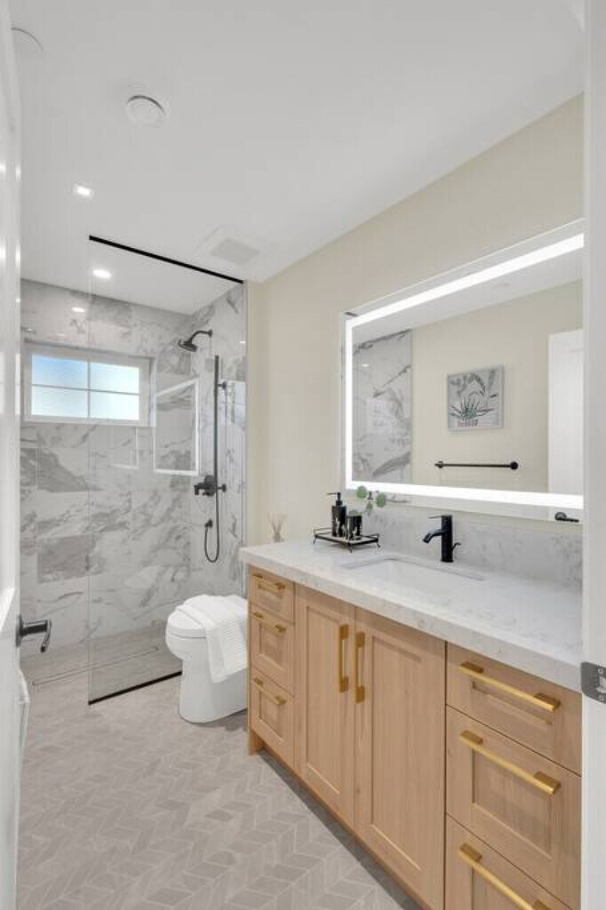 Step into this freshly built masterpiece of a home, located in the coveted tree-lined streets of Vancouver's lovely Kerrisdale neighbourhood. This home is as refined as it is functional, offering gorgeous, up-to-date interior furnishings and architecture, all while benefitting from an ideal layout for families to enjoy a luxurious and comfortable stay. Equipped with 4 full bedrooms, 3 full bathrooms, a gourmet kitchen, and more, you will find that this home will exceed the highest expectations. The space within this home is a remarkable testament to contemporary architecture and design, offering a sense of warmth and naturality, yet maintaining a modern, sharp aesthetic. This design is achieved through the application of natural, bright hardwoods and bright furnishing accents, as they contrast with the dark textures of the cabinetry and decorations. Large windows throughout the home allow for natural luminosity to fill the space within, creating a refreshing feel within this brand-new home. The home is fitted with every essential a family could need during their stay, but this home goes above and beyond essentials by offering many luxury amenities, including a full gourmet kitchen with a wine fridge and built-in Fulgor Espresso machine, a lovely outdoor patio with a built-in fireplace, 3 full bathrooms with smart mirrors, complimentary parking spots, a stunning view of the mountains from the back porch, and access to a beautiful park which also gives peace, quiet, and privacy. Guests may use one garage parking spot in the alleyway. Welcome to peaceful Kerrisdale and Arbutus Ridge neighbourhoods, both known as some of Vancouver's most desirable locales. This charming area boasts tree-lined streets, beautiful parks, and a relaxed atmosphere that feels a world away from the hustle and bustle of the city. Enjoy a stroll along the quiet sidewalks and take in the local shops and cafes on 41st, or explore the nearby gardens and natural beauty. This Kerrisdale home offers the perfect retreat from the stresses of everyday life, with comfortable accommodations and a serene setting. Kerrisdale is a walkable neighbourhood, so exploring on foot is a great option. However, if you need to go further, there are several transit options available, including buses and the Canada Line Skytrain. You can also easily rent a bike or take a taxi or rideshare service to get around. Additionally, there are several car rental companies located nearby if you prefer to have your own vehicle during your stay. This is a 4-unit home, with each unit having ample privacy and sound protection. Important House Rules: No parties, events, or large gatherings and no smoking. [SI]
