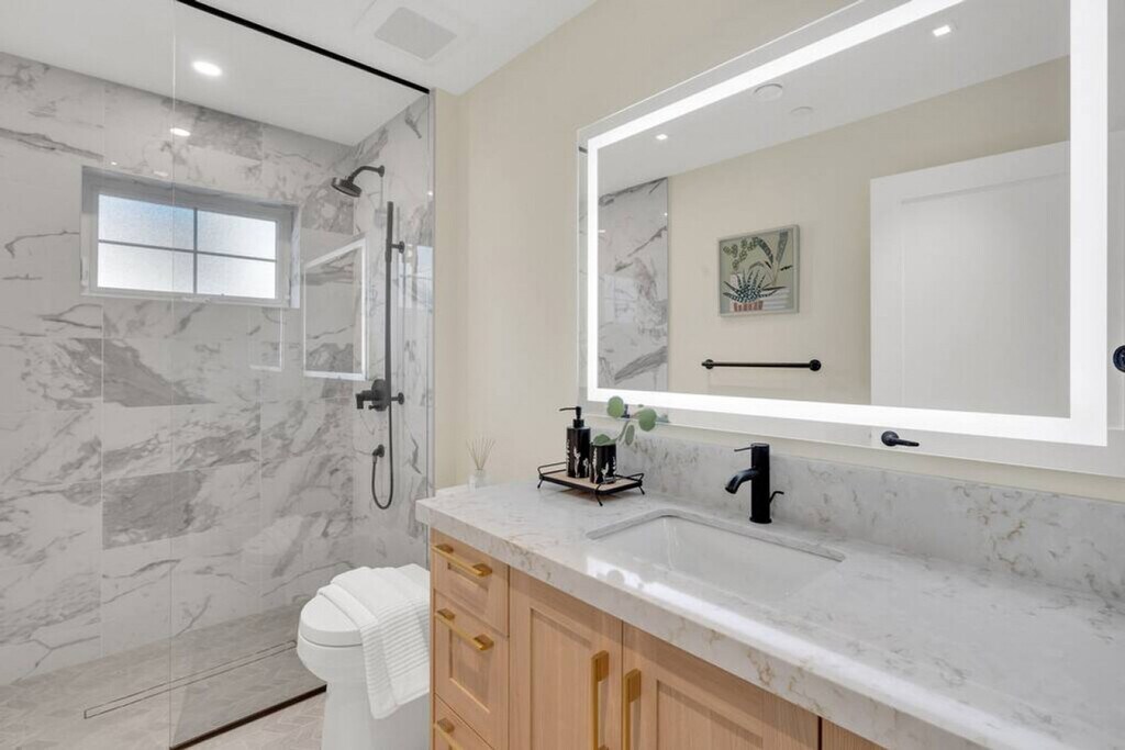 Step into this freshly built masterpiece located in the coveted tree-lined streets of Vancouver's lovely Kerrisdale neighborhood. This home is as refined as it is functional, offering gorgeous, up-to-date interior furnishings and architecture, denoted by bright hardwoods and monochromatic textures, producing a contemporary and warm essence. Equipped with 4 full bedrooms, 3 full bathrooms, a gourmet kitchen, and more, this home will exceed the highest expectations. The space within this home is a remarkable testament to contemporary architecture and design, offering a sense of warmth and naturality, yet maintaining a modern, sharp aesthetic. This design is achieved through the application of natural, bright hardwoods and bright furnishing accents, as they contrast with the dark textures of the cabinetry and decorations. Large windows throughout the home allow for natural luminosity to fill the space, creating a refreshing feel within this brand-new home. The home is fitted with every essential a family could need during their stay, but it goes above and beyond essentials by offering many luxury amenities, including a full gourmet kitchen with a wine fridge and built-in Fulgor Espresso machine, a lovely outdoor patio with a built-in fireplace, 3 full bathrooms with smart mirrors, complimentary parking spots, a stunning view of the mountains from the back porch, and access to a beautiful park which also gives peace, quiet, and privacy. Guests may use one garage parking spot in the alleyway. Welcome to the peaceful Kerrisdale and Arbutus Ridge neighborhoods, both known as some of Vancouver's most desirable locales. This charming area boasts tree-lined streets, beautiful parks, and a relaxed atmosphere that feels a world away from the hustle and bustle of the city. Enjoy a stroll along the quiet sidewalks and take in the local shops and cafes on 41st, or explore the nearby gardens and natural beauty. Kerrisdale is a walkable neighborhood, so exploring on foot is a great option. However, if you need to go further, there are several transit options available, including buses and the Canada Line skytrain. You can also easily rent a bike or take a taxi or rideshare service to get around. Additionally, there are several car rental companies located nearby if you prefer to have your own vehicle during your stay. This is a 4-unit home, with each unit having ample privacy and sound protection. Important house rules include no parties, events, or large gatherings and no smoking. [SI]
