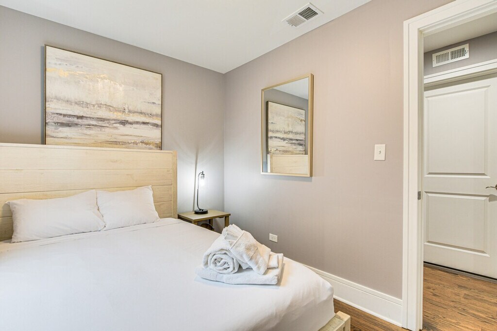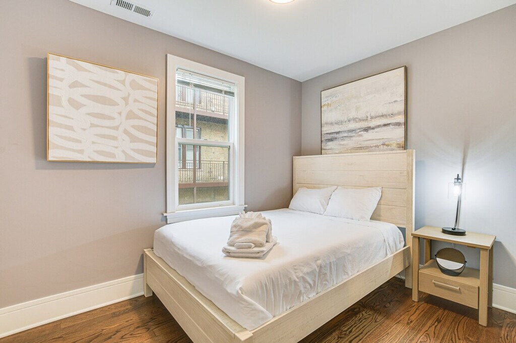 Experience the vibrant energy of Chicago from this updated 2-bedroom, 1-bath apartment, perfectly situated for your Windy City adventure. Located on the 2nd floor, this single-story apartment requires stairs for access and is conveniently positioned above a restaurant, offering a unique city living experience. Feel at home with sleek furnishings and all the essentials for a seamless stay. The apartment is designed for comfort and convenience, featuring a well-equipped kitchen with stainless steel appliances, including a stove, oven, refrigerator, microwave, toaster, and both drip and single-serve coffee makers. Enjoy meals at the dining table or unwind in the living room with a Smart TV and board games. Parking is available on a first-come, first-served basis with metered street parking. Nestled in a prime location, this apartment offers easy access to a multitude of local dining options just steps from your door. Explore the best of Chicago with ease, as the city's attractions are within close reach, making it an ideal base for sightseeing and experiencing the local culture. The apartment maintains a no-smoking and no-pets policy, and quiet hours are observed from 8:00 PM to 8:00 AM. Guests must be at least 25 years old to book, and keyless entry provides easy access to the entire property. While there is no in-unit washer and dryer, two laundromat facilities are available in the area. Stay connected with free WiFi, making it easy to work remotely or keep in touch with loved ones during your stay. Registration Number: R2 [SI]