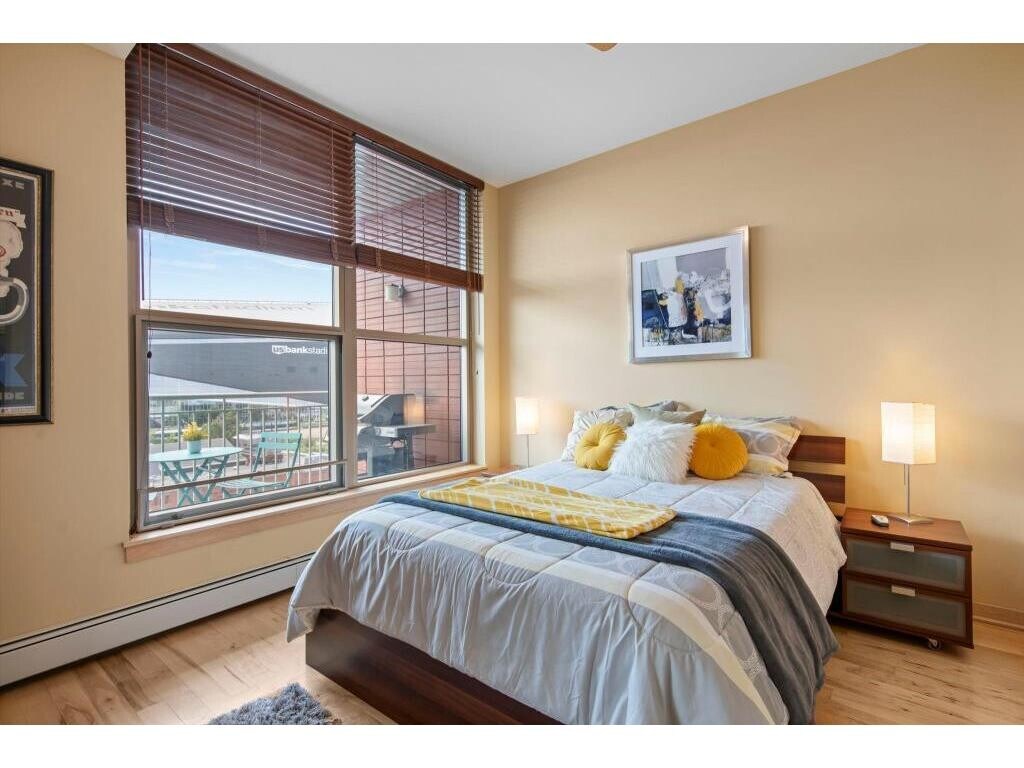 Live across the street from Gold Medal Park with amazing amenities and stunning downtown views from this Bridgewater Lofts 1BR available furnished or unfurnished with parking and utilities included. You’ll love the wall of windows facing US Bank Stadium, hardwood floors, custom closet organizers, in-unit laundry, space for a home office, and inset balcony with gas grill. Kitchen features granite countertops, tons of cabinetry, gas cooktop, and stainless-steel appliances. Bridgewater Lofts puts you in the heart of the Mill District and provides a rooftop pool and jacuzzi, separate community patio, massive community room, fitness center, seasonal art displays, indoor/heated guest parking, onsite professional management, and 1st floor retail. Included in rent: 1 Indoor heated parking stall, water/sewer/trash, electric, gas, heat, A/C, basic cable and internet service. Unit can be rented furnished for an additional $300 monthly charge. App Fee: $78; Admin Fee: $150; Move-in fee: $800; Security Deposit is one month's rent.