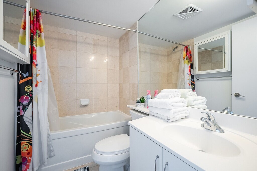 Feel at home in this newly renovated 2-bedroom, 2-bathroom apartment nestled in the heart of Downtown Toronto. This stylish unit offers the perfect blend of comfort and sophistication. This comfortable suite is equipped with everything you need for a relaxing stay. The fully functional kitchen comes stocked with all the essentials, including tea, coffee, a kettle, coffeemaker, and toaster. You'll also find a washer and dryer with supplies, making laundry a breeze. In the bathroom, you'll find fresh towels, shampoo, conditioner, body wash, a hairdryer, and other toiletries. Paid underground parking with in/out privileges is available upon request for $20 per night ($10 CAD if you book 15 nights or more). A travel crib (for babies 0-18 months) and bed rails are available for $5 per item per night. Pets are allowed with a fee of $10 per pet per night. Please confirm the opportunity to bring a pet prior to booking. Step outside and immerse yourself in Toronto's vibrant scene, with top restaurants, trendy shops, and exciting entertainment just steps away. Inside, floor-to-ceiling windows flood the space with natural light, highlighting the open-concept layout and high-end furnishings handpicked by an award-winning interior designer. According to the condo rules, information about guests must be provided to the condo management prior to arrival, including each guest's name and ID details, and vehicle and license plate numbers (if parking is required). Guests whose names or IDs do not match the information given are not allowed into the building. Guests must be 18 or over in order to check in. If you do not agree to provide this information, a refund cannot be guaranteed. Registration Number: STR-2402-GSWBHV [SI]