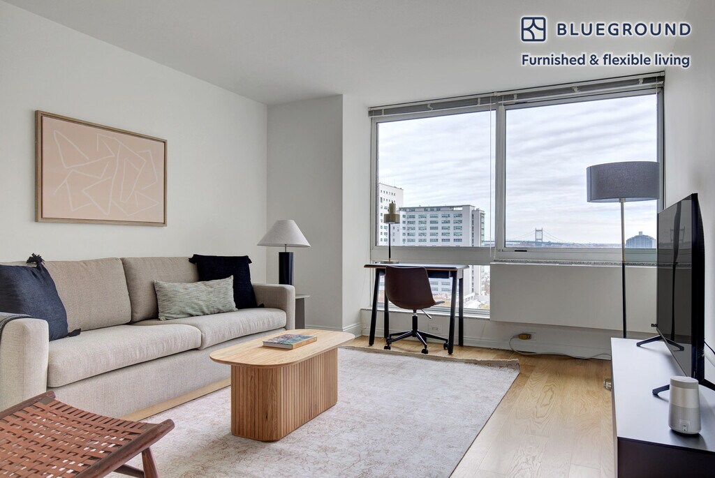 Discover the best of New York, with this one bedroom apartment in East Harlem. It’ll be easy to simply show up and start living in this furnished apartment with its fully equipped kitchen, living room, and our dedicated, on-the-ground support. (ID #NYC688) The advertised rate of $5,290/month is the lowest available price, based on a 6 month(s) and 4 day(s) stay with a move-in date of July 1, 2026. If you’re looking for a 1-year stay, the rate is $6,060/month. Rates vary depending on the duration of stay, season, and other parameters. For exact pricing and additional pricing components, please visit our website and enter your desired move-in and move-out dates. The rate is applicable when billed upfront; it can be higher if billed in multiple payments. Brokers are welcome to reach out. Were you looking for an unfurnished lease? Try Blueground instead and upgrade from unfurnished to furnished living: - Furnished at rates comparable to unfurnished - No setup or furniture costs - save thousands - Move-in ready - save time, just bring your suitcase Designed with you in mind Gorgeous furniture, fully equipped kitchen, smart TV, and a premium wireless speaker are just a few of the amenities you’ll find inside this one bedroom apartment. Ideally located in New York, you’ll find a lot to love outside as well. When you’re ready to relax, you’ll be happy to discover every Blueground bedroom comes with superior quality mattresses, luxury linens, and cozy towels. We handle everything so you can simply show up and start living. This apartment also offers in-apartment laundry. Sleeping arrangements Queen Bed, 63in/160cm Amenities Building amenities unique to this one bedroom apartment include an on-site: - Doorman - Dryer - Elevator - Swimming pool - Washing machine - Pets allowed - Playground Arrival and ongoing support The entire apartment is yours to enjoy! Throughout your stay, you’ll have access to our Client Experience team through the Blueground App. You can schedule additional cleanings, submit maintenance requests, and view our neighborhood recommendations with just a few taps. We’ll share all details upon confirmation of your stay. Ideally Located This furnished apartment is located in East Harlem, also known as “El Barrio” because of its extensive Latin population. It’s a diverse, vibrant area with many Puerto Rican, Mexican, and African American-owned businesses. This includes the eclectic restaurants that make East Harlem a foodie paradise along with neighborhood classics like Sylvia’s, Rao’s, and Patsy’s Pizzeria. There’s plenty to see and do here, like admiring the murals and street art, going for a walk at Thomas Jefferson Park, or checking out El Museo del Barrio. Its convenient location in the borough of Manhattan makes it easy to commute in and out of as well. Other things to note Building amenities may have an extra cost. This Blueground apartment has flexible lease options, allowing you to book it for six months, a year, or more. Pets are welcome, though weight limits and breed restrictions apply and may incur fees. Brokes CYOF. We take great pride in ensuring every photo displayed is shot in our own units with our actual furnishings. That said, we regularly refresh our decor and furniture arrangement, which may differ from what’s pictured. [SI]