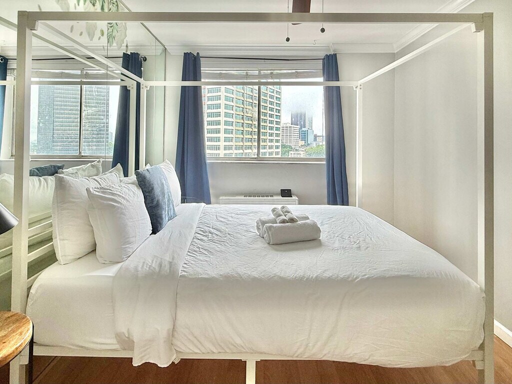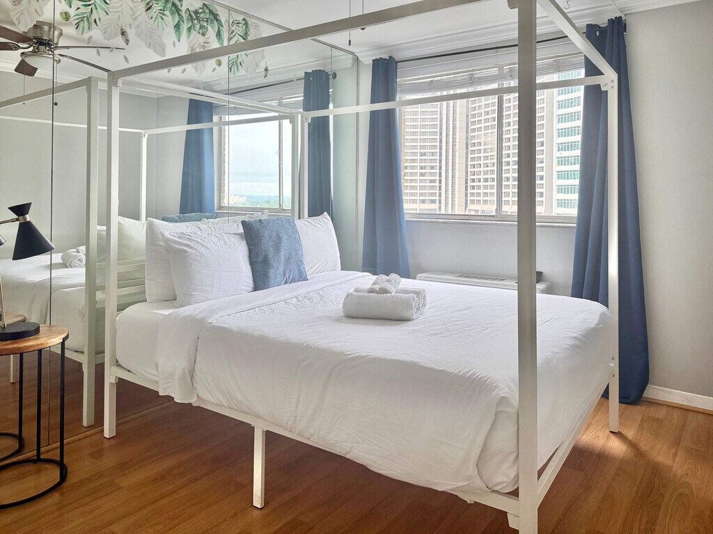 The advertised rate of $3,869/month is the lowest available price, based on a 30 day(s) stay with a move-in date of May 1, 2026. Rates vary depending on the duration of stay, season, and other parameters. For exact pricing and additional pricing components, please visit our website and enter your desired move-in and move-out dates. The rate is applicable when billed upfront; it can be higher if billed in multiple payments. Welcome to your downtown Atlanta retreat. This spacious 4-bedroom, 2-bath condo, complete with a sunroom bonus room, offers a perfect blend of comfort and convenience. Located in a residential condominium building, it provides beautiful views of the city from the living room and bedroom. Enjoy easy mobility with the MARTA Civic Center station just two blocks away, and explore the vibrant city life with premier attractions within walking distance. Experience the vibrant city life with easy access to Atlanta's premier attractions. The condo features a spacious living room with a large flat screen Smart LED TV for entertainment and a fully equipped kitchen with a stove, refrigerator, coffee maker, and microwave. Free Wi-Fi is available to keep you connected during your stay. Paid parking is available onsite for your convenience. There are paid laundry facilities in the basement of the building for added convenience. Situated in the heart of downtown Atlanta, this condo is just a few blocks from the Hyatt Regency and within walking distance of major downtown hotels. You'll be a short walk or drive to the Americas Mart, CNN Center, Centennial Olympic Park, Peachtree Center Mall, Georgia World Congress Center, Philips Arena, Atlanta Aquarium, and the New World of Coca-Cola. The local dining scene offers numerous restaurants and bars nearby. The condo is located in the heart of the city, and there are often houseless individuals smoking and drinking around the area and outside of the building. The building is currently under construction, so there are blowers in the floor of the lobby and in the hallways to get rid of smells. The parking lot is on-site but privately owned, and you may see some trash in the area. The parking lot can get creepy at night, so you may want to find another parking lot nearby if you are not comfortable. AC and heating are available seasonally, controlled by the HOA without a thermostat. Quiet hours are between 21:00 and 9:00. The space is for residential use only and is not for social gatherings or parties. Only registered guests are allowed in the unit. No pets are allowed at any time, with a minimum fine of $500. Behavior resulting in a false fire alarm incurs a minimum fine of $150. No eating, beverages, or smoking are allowed in the hallways or other common areas of the building, with a minimum fine of $50. Do not put pizza boxes or other large items into the hallway trash chutes, with a minimum fine of $50. Bicycles are not allowed to enter the building. Free Wi-Fi is available to keep you connected during your stay. [SI]