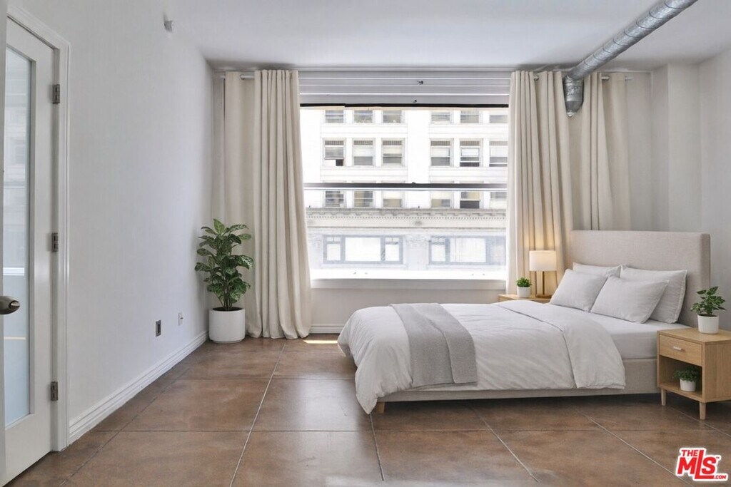 Bright south-facing 1 bed/1 bath live/work loft at the historic Bartlett Lofts. This south-facing loft features rare oversized windows unique to only a few units for an abundance of natural light. In true urban loft style, there are concrete floors throughout and soaring 10ft+ ceilings. The open plan living space flows seamlessly into the kitchen and there's a completely separate south facing bedroom with a huge window. The ensuite bathroom features a large soaking tub and stackable W/D unit inside. There is a powerful heating and AC unit in the living area and large storage closet near the entry. PARKING IS NOT INCLUDED IN RENT. RENT INCLUDES WATER, TRASH. Building amenities include 24/7 front desk security, a breathtaking nearly 360-degree rooftop deck/lounge area, and courtyard. Situated in the heart of the historic core with a Walk Score of 98, you're within a few blocks of the best of DTLA, such as Grand Central Market, Restaurant Row, Whole Foods, Ralphs, Apple Tower Theater/Store, L. A. Athletic Club, Metro Red Line subway, Per La Hotel, The Bloc, Fashion District, Disney Concert Hall, The Broad Museum, Hoxton/Proper/Freehand hotels, Grand Central Market, Corporation Food Hall, Flower Market, Sonoratown, Urban Outfitters, Kreation Organics, Broken Mouth, Holy Basil, Bottega Louie, Beelman's, Blu Jam Cafe, Buzz Wine Shop, FIGat7th, Spring Arcade, Sunday Farmers Market, The Last Bookstore, and much more. MLS# 25623927