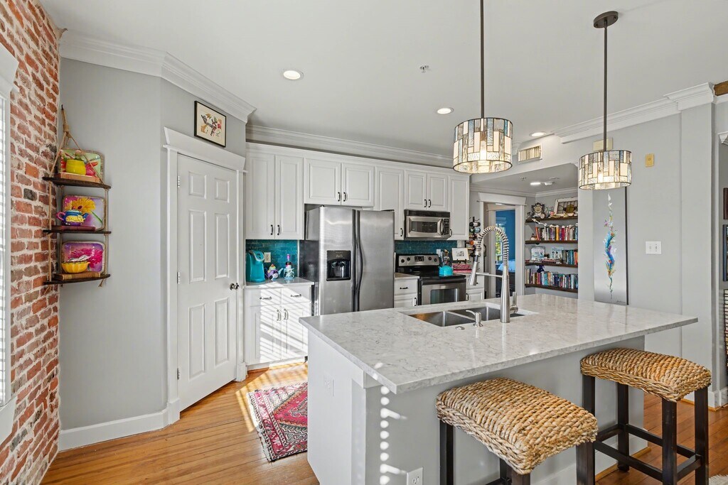This top-floor 2BD residence offers a rare combination of character,privacy,and light,set within the Abbey Building—a historic Heights church thoughtfully converted into just 18 one-of-a-kind homes filled with charm and character. Natural light floods the space through high ceilings enhanced by exposed beams for added architectural interest. The interior blends modern updates with timeless texture,featuring hardwood floors,an updated kitchen,and exposed brick accents. The kitchen and dining area open directly to a shared balcony. The layout offers two well-proportioned bedrooms with generous closets,plus the convenience of included refrigerator,washer,and dryer. Both full bathrooms have been thoughtfully updated. Two dedicated garage spaces are included,along with water and trash. Set in the heart of Woodland Heights,this home is surrounded by walkable streets,local favorites,and nearby parks—offering a lifestyle that’s as appealing as the space itself. MLS# 76314878