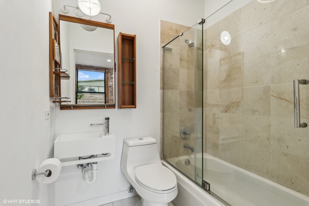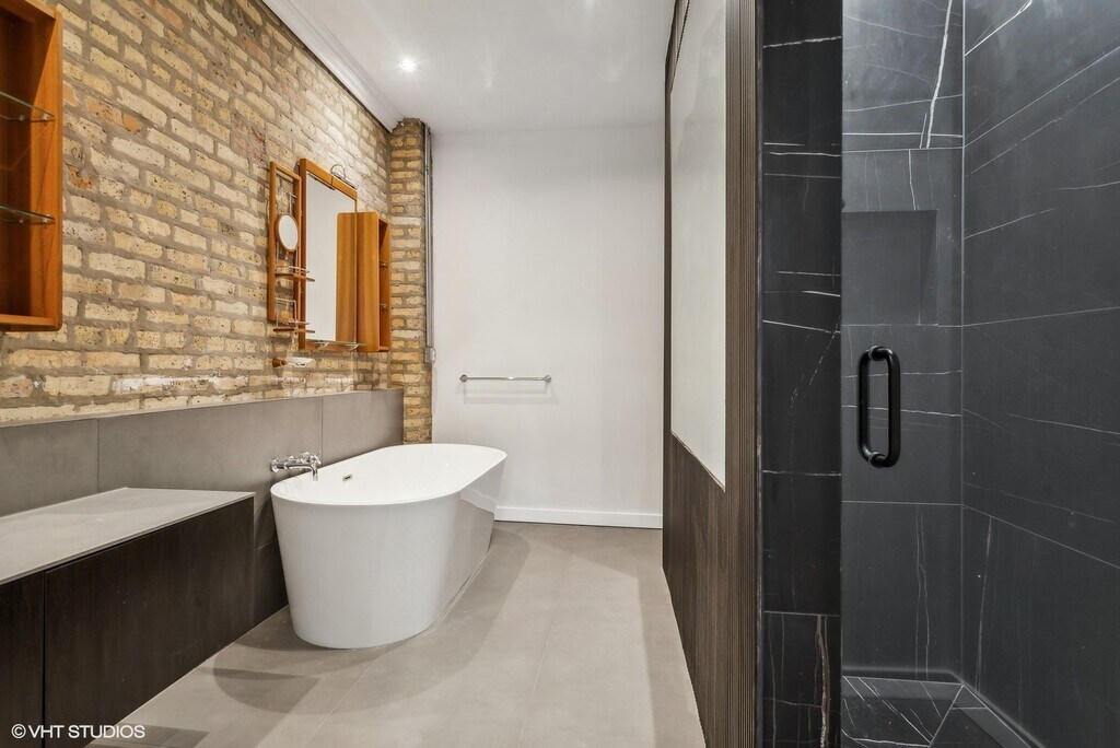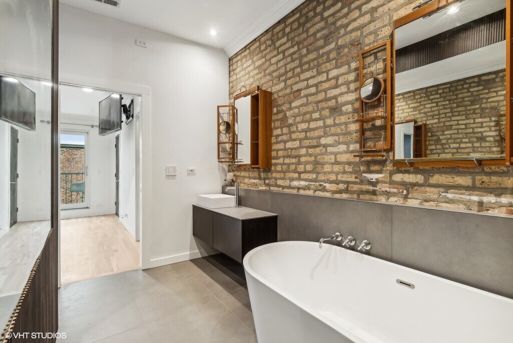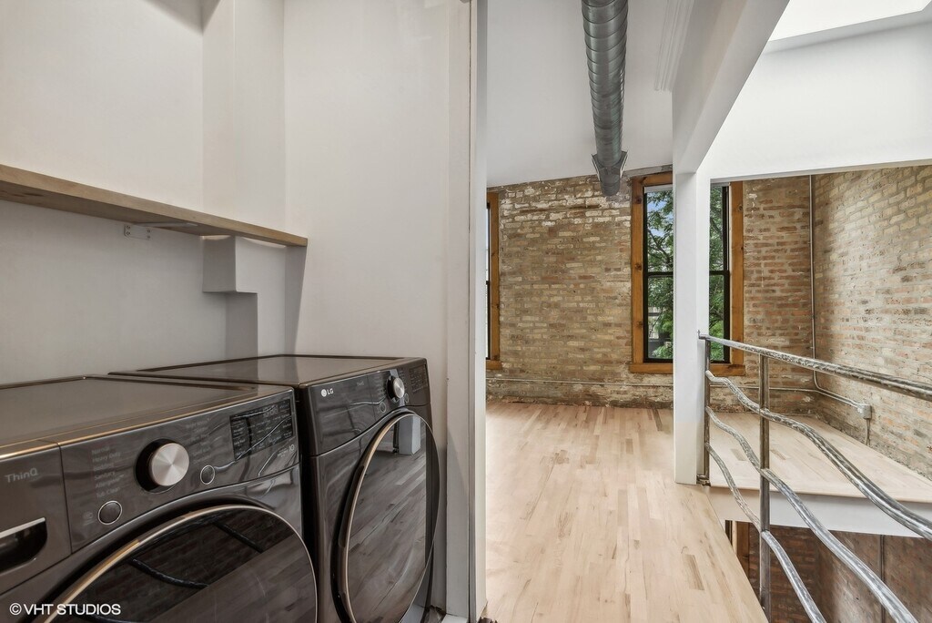 Welcome to 2156 W. Hubbard! This stunning 3BR, 3.5BTH single family row house offers almost 3,000 sq. ft. of living space and is one of the absolute coolest luxury loft properties in the entire city! Nestled in-between some of Chicago's most vibrant neighborhoods in a great West Town location near several Public transportation options including the Green Line "L" and multiple Metra lines, this truly unique property offers a flexible floor plan, perfect as your dream home or a combination work/live space. As you enter through the first-floor foyer, you'll be greeted by beautiful, brand new bleached Scandinavian hardwood floors, soaring exposed "Chicago Brick" walls spanning all three levels, and a gorgeous wood-burning fireplace. You will immediately notice how bright and spacious the unit feels thanks to its high ceilings, open layout, and the abundance of natural sunlight pouring from the top floor skylight. The first level also conveniently includes a full bathroom and direct access to your very own private 1.5 car attached garage! Continuing to the second floor, you'll find a massive combination living/dining/kitchen space, ideal for hosting guests. A brand-new kitchen with ultra-sleek and modern Italian style cabinetry and very large island as well as sliders to the first of two outdoor decks, perfect for your morning coffee or an evening glass of wine. A modern and remodeled powder room rounds out the second level. Upstairs, you will find full-sized laundry closet and two very nicely sized bedrooms, each featuring en-suite bathrooms and gorgeous, custom designed massive primary walk-through closet. The primary bathroom is a work of art that was just completed! All brand new, modern, sleek shower, an elegant stand-alone soaking tub with gorgeous hardware and stunning vanity. This dream bathroom is where modern design meets luxury. A second private deck off the primary bedroom is the cherry on top for the third floor of this amazing dream loft single family home! All these just minutes from some of Chicago's best restaurants, bars, shops and entertainment venues: Randolph Street, Wicker Park, West Loop, River North and of course, easy access to downtown! This property is the perfect place to call home. Don't miss your chance to live in this rarely available, one-of-a kind property! Required deposit of $5,500. No pets.