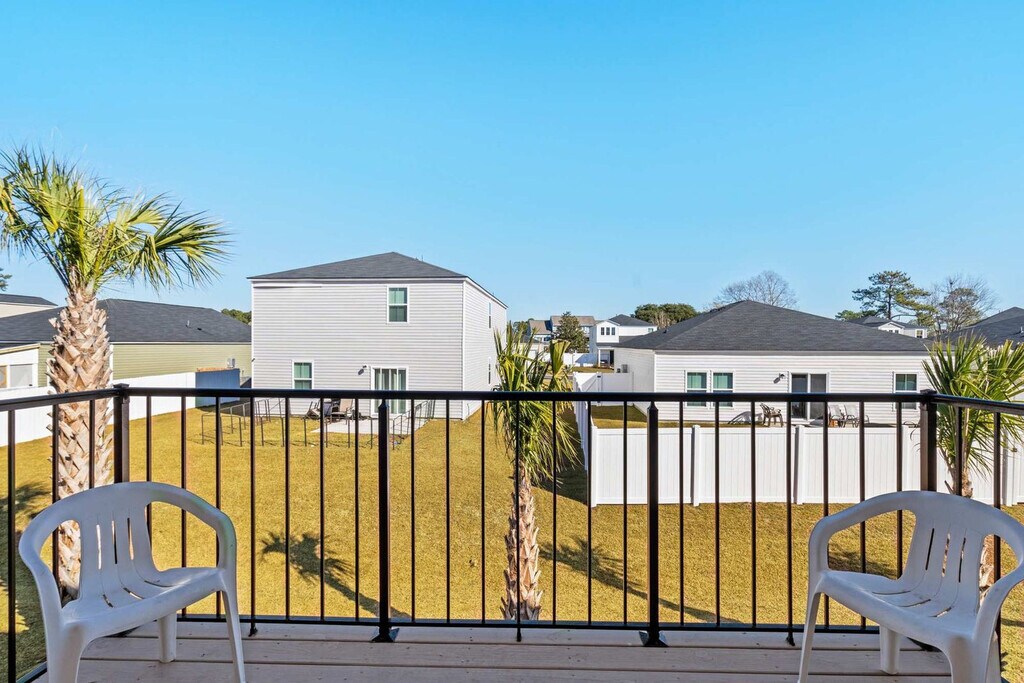 Feel at home in this all-inclusive condo in a laid-back, family-friendly community. This split-level condo offers privacy, with one bedroom and bath on each floor. The condo boasts an open living space and a stocked kitchen. Both bedrooms are on their own floors, each with a private en-suite bath. The lofted suite on the upper floor has a walk-in closet, and you can enjoy breakfast on your private balcony with a pool view. Linens are provided for all beds, as well as bath towels, hand towels, and wash cloths. A roll of paper towels, toilet paper, hand and dish soaps, laundry pods, and dish pods are also provided. Beach towels are not provided. Backpack-style beach chairs are available to rent through a link after booking. Located between Business Hwy 17 and Hwy 17 Bypass, Grand Palms at Deerfield is in the middle of Surfside Beach, with easy access to restaurants, shopping, and amenities. There are 3 grocery stores, Target, and Walmart within 3 miles. The Wooden Spoon, Surfside Pizza, The Bar-B-Q House, and Johnny D's Waffles are nearby. Additional restaurants and shopping are in the Market Common. The Myrtle Beach International Airport is 15 minutes away, but a car is recommended. Check-in is from 4:00 PM to 10:00 PM, and check-out is at 10:00 AM. The minimum age requirement to book is 25. Occupancy may not exceed 5, including infants and children. Quiet hours are between 11:00 PM and 7:00 AM. The property is non-smoking, and pets are not permitted. Please treat the home and grounds with respect. Do not hang towels or bathing suits on balconies. No portable grills are permitted on balconies. All garbage should be secured in bags and deposited in the trashcans. No flammable fluids or hazardous materials are permitted. Do not obstruct common areas with bikes, floats, or chairs. Park anywhere in front of the building. Please consider your neighbors and keep noise at a reasonable level. [SI]