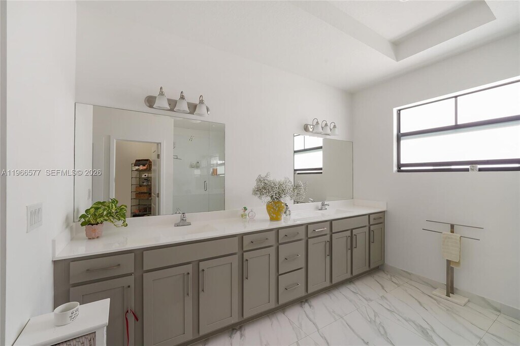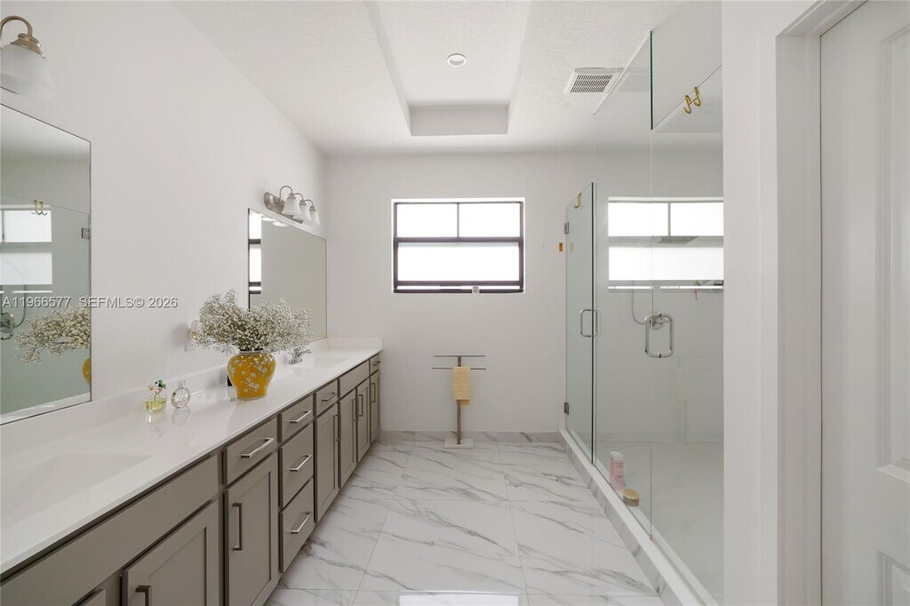 Spectacular 2021 two-story single-family home featuring 4 Spacious Bedrooms and 4 Full Bathrooms. Elegant Porcelanato tile flooring flows throughout entire home. Modern European-Style kitchen is equipped with Stainless Steel appliances, Quartz countertops and Large Island. Spacious Master bedroom offers his and hers walk-in closets and Luxury Bathroom with double vanity and dual shower. Functional layout includes a Junior Suite With private bathroom and 2 bedrooms connected by a Jack and Jill bathroom. Full Cabana bathroom on the first floor with direct access to a large fenced patio, ideal for outdoor entertaining. High Impact windows. Close to top-rated schools, Baptist Health Emergency Care, and major highways. No HOA!!!!! FAST APPROVAL. Pet Friendly. MLS # A11966577