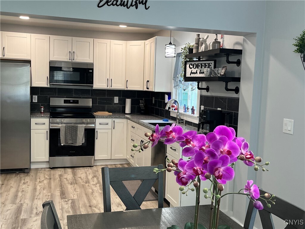 Now leasing 3 Bedroom 1 1.2 bath home in Camillus. This beautifully remodeled home is fully furnished with all modern furnishings. The large Kitchen has all stainless-steel appliances. and it directly comments to the Livingroom and Dining room with a slider that leads to the private back yard. The yard has a sitting area with a grill for outdoor entertaining. The entire home has been renovated. Washer and dryer are in the basement. We are looking for a 1-year lease. This stylish and turnkey residence has a large driveway for off street parking. This property is centrally located to all highways and is just minutes from all types of shopping and entertainment. Less than 3 minutes to town ship 5.