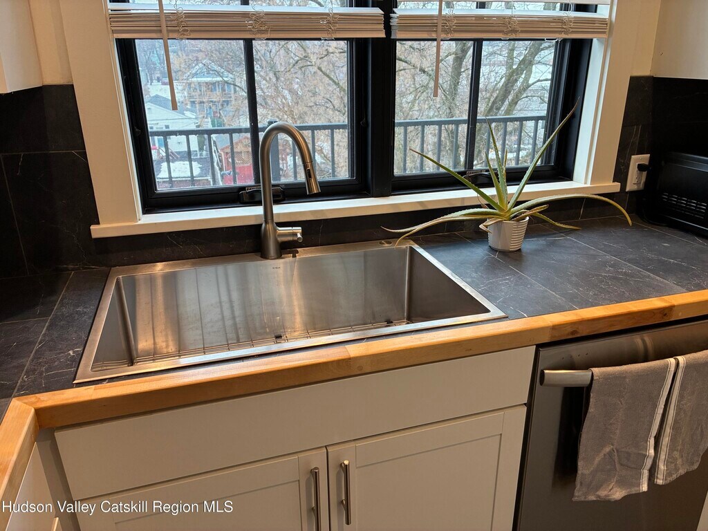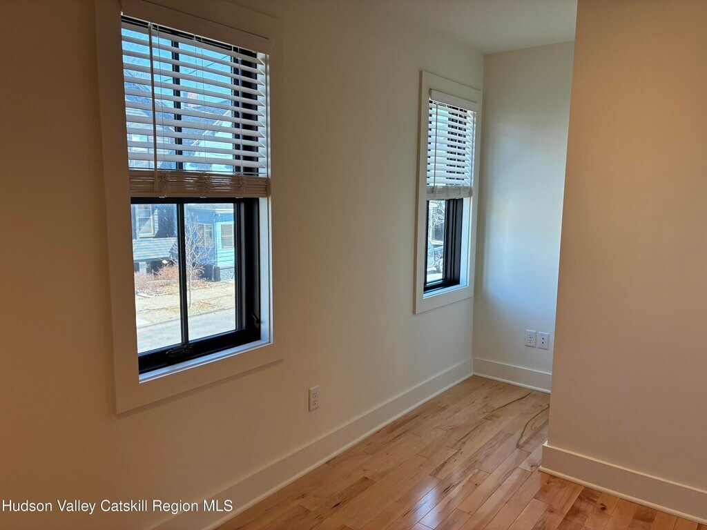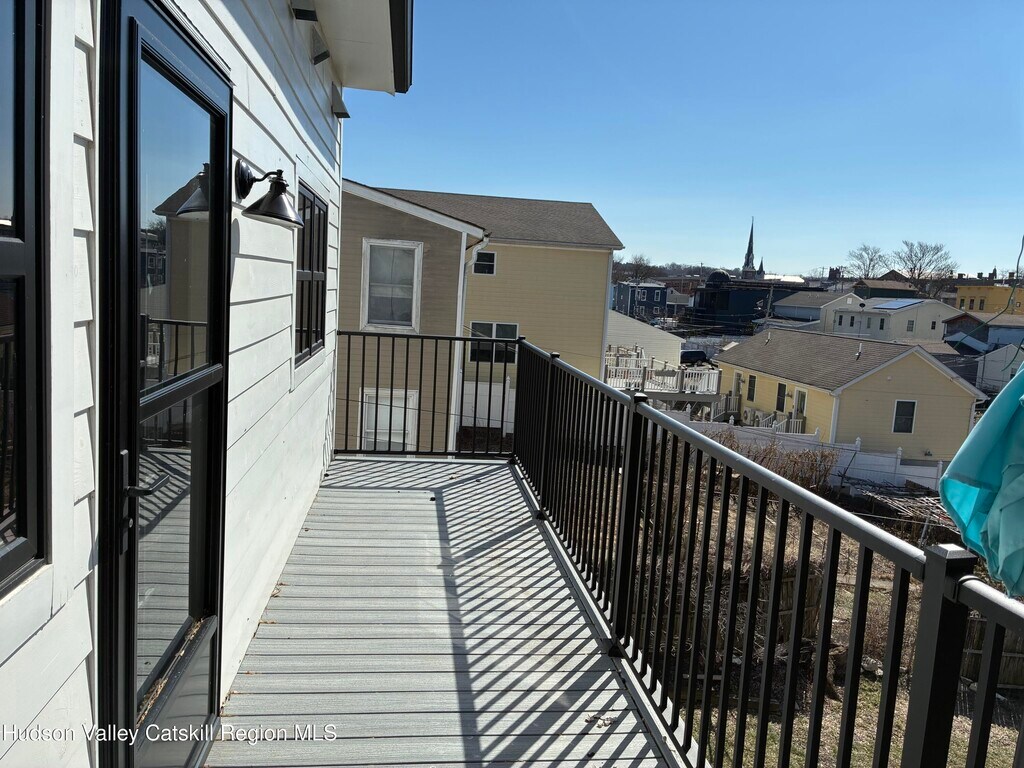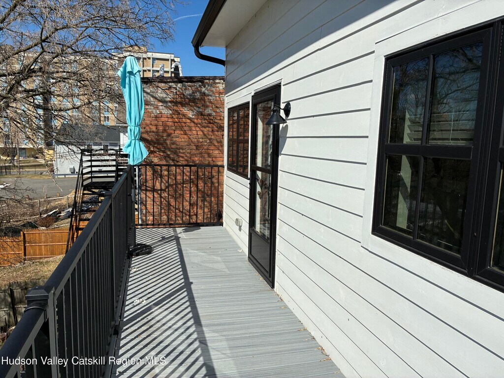Sarah LipskyBeautifully and completely renovated, second floor, light filled, two-bedroom apartment with hardwood floors, air conditioning, new kitchen and tiled bathroom. Up the stairs into the open living space with high vaulted ceilings. A wonderful kitchen with tiled floor, backsplash and counters, an extra-large sink in front of windows overlooking the garden. Brand new appliances including a dishwasher. Dining area with built in additional storage and more windows. Step out onto the balcony, facing southwest for wonderful light and sunsets. Perfect spot to relax, dine or work remotely. New windows, extra insulation along with very energy efficient heating/air conditioning system and LED lighting. In unit washer and dryer, spacious closets, wired for internet, off street parking and garden space in back. Locked storage space for each apartment in the dry basement. A short walk to Amtrak and two blocks to Warren Street shops, cafes and restaurants. Or a quick stroll to the Hudson River Waterfront Park or the fabulous weekly Farmers Market. Tenant pays heat and electric. Rental application, satisfactory credit report and references. No smoking on property. One dog with landlord approval. Renter's insurance required.