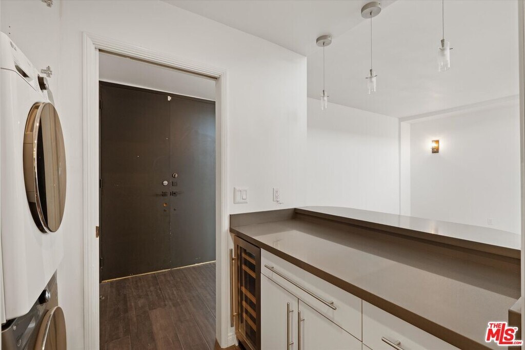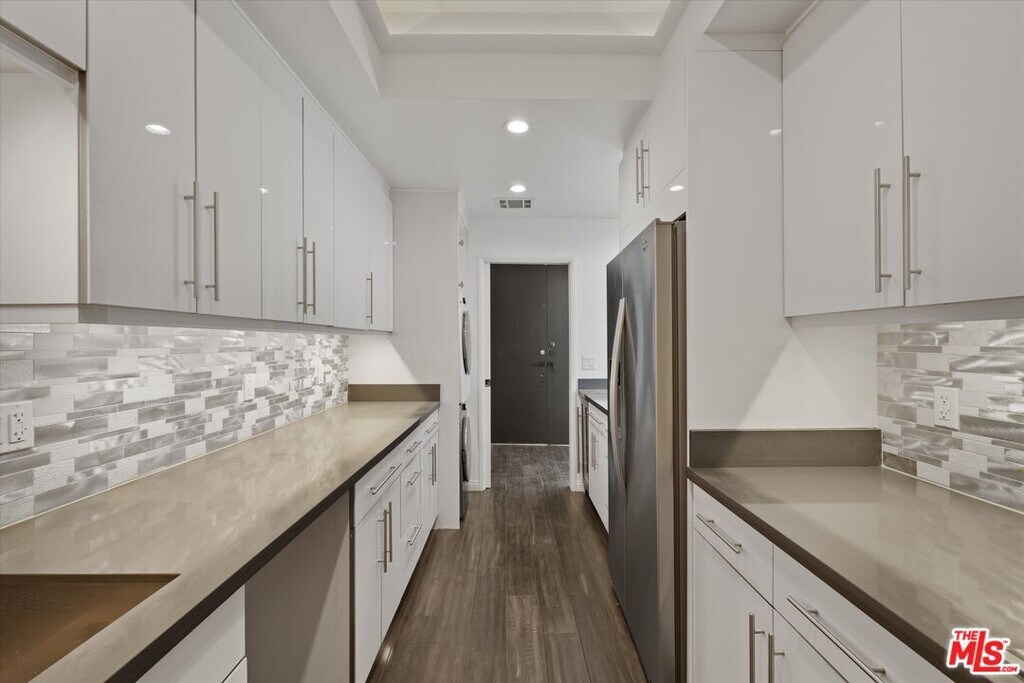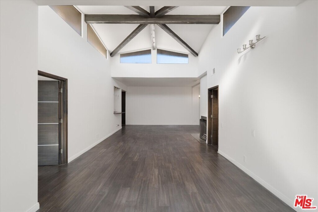 Stunning single level penthouse, where cathedral ceilings with 360 degree windows flood the living room with natural light. Remodeled throughout, this home blends style and comfort with an open-concept design perfect for both relaxing and entertaining. The kitchen features sleek stainless steel appliances, contemporary countertops, a spacious breakfast bar, and ample cabinetry. The primary suite offers a serene retreat with a large floor to ceiling window, a generous walk-in closet, and a spa-inspired en suite bathroom complete with a soaking tub, separate glass-enclosed shower, and dual vanities. Additional highlights include in-unit laundry, two-car parking with an EV charger, and access to the community pool. Perfectly situated near shopping, dining, and entertainment. Unit is Unfurnished. MLS# 25615065