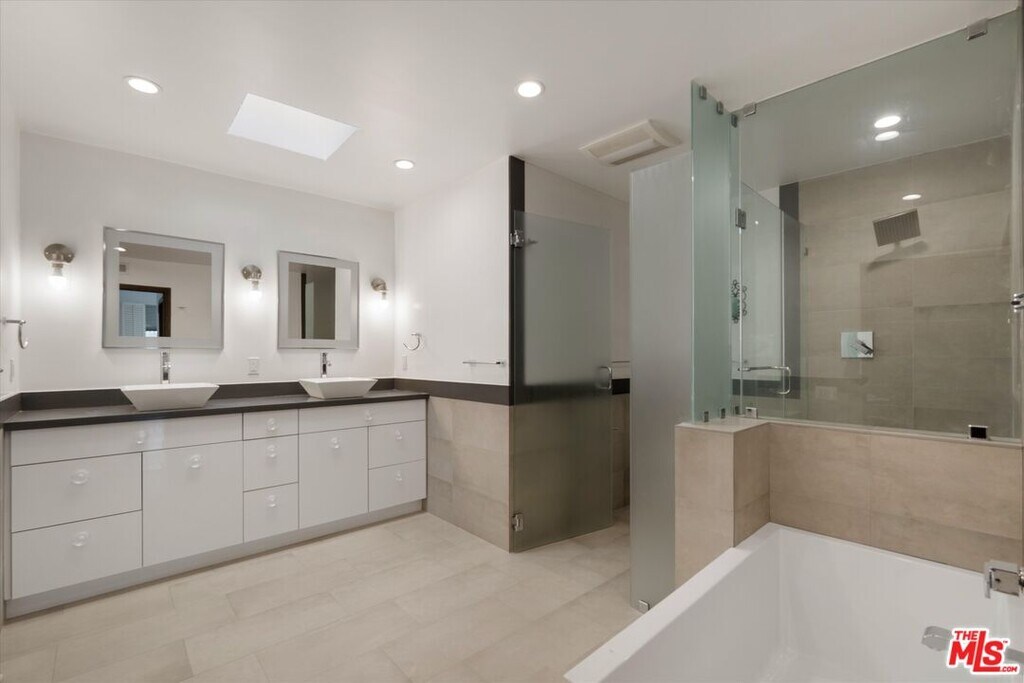 Spectacular front facing 3 bedroom 3 bath Top-Floor penthouse! South facing with vaulted ceilings and skylights bring amazing light and bright feel to this exceptional unit. Spacious open concept living, dinning, and family Completely remodeled kitchen and bathrooms. The kitchen is complete with stainless steel appliances, contemporary countertops, breakfast bar and wine cooler. Master suite has large window, walk-in closet, and spacious master bath. Two other bedrooms with big windows and tons of light. Patio off of the living room. Complex has pool and EV chargers.