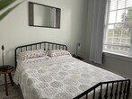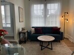 This 1BR/1BA apartment located on the first floor of a historic 3-story building is centrally located in the heart of Savannah's Historic District, directly across the street from Colonial Park Cemetery on Abercorn Street between Oglethorpe and Liberty. The apartment is unfurnished and features an open floor plan with a fully-equipped eat-in kitchen that connects to the living room/sitting area. The kitchen includes new stainless steel appliances, a stackable washer/dryer and updated countertops/cabinets that overlook our buildings beautiful courtyard. The comfortably sized bedroom includes a large hanging closet, soft silver wall to wall carpeting and plenty of shelving. The en-suite bathroom has a full size bathtub/shower combo and a window for natural light. There is good cabinet storage space and 2 hanging shelving units. The stone vanity top sits under an oversized mirror with ample lighting. Step out the front door to find yourself at the center of one of the largest National Historic Landmark Districts in the United States. All that the historic district has to offer is a very short walk away from your cozy downtown hideaway: historic sites, restaurants and bars, Forsyth Park and city squares, City Market, River Street, shopping, spas, museums, theaters, churches, and so much more! After exploring all that Savannah's Historic District has to offer, take some time to relax and refresh in the beautifully landscaped shared courtyard. Walk score 98 ! Unfurnished, one year lease, well behaved pets considered, tenant responsible for electricity and internet.