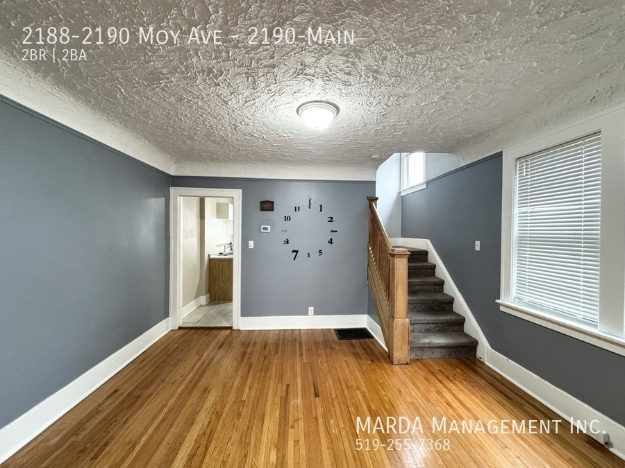 Welcome to 2190 Moy Unit A, a well-maintained 2 bedroom, 1.5 bathroom two-storey main floor unit located in desirable South Walkerville. This home offers a functional layout with great living space and classic finishes throughout. Upon entering, youre welcomed into a cozy living room with a fireplace and gleaming hardwood flooring throughout, with tile in wet areas for easy maintenance. The space flows into a large dining room, perfect for entertaining or everyday use. The L-shaped kitchen offers plenty of cabinet space and newer countertops, providing both functionality and storage. Just off the kitchen is a combined laundry room and 2-piece bathroom, creating a very practical space that also leads out to the backyard with a deck and access to the garage. Upstairs, youll find two well-sized bedrooms, each with closets, along with the main bathroom featuring a tub/shower combo and additional storage space. The bathroom also provides access to a small balcony, adding a unique touch to the home. Tenants are responsible for 70% of hydro and gas, as well as lawn care and snow removal. One-year minimum lease. First and last months rent and a credit check are required. Professionally managed by MARDA Management, offering 24/7 maintenance support with a live agent and easy, convenient rent payment options. Call MARDA MANAGEMENT today at or email to schedule your viewing. Fenced Back Yard Front Porch No Smoking Allowed Pet Friendly