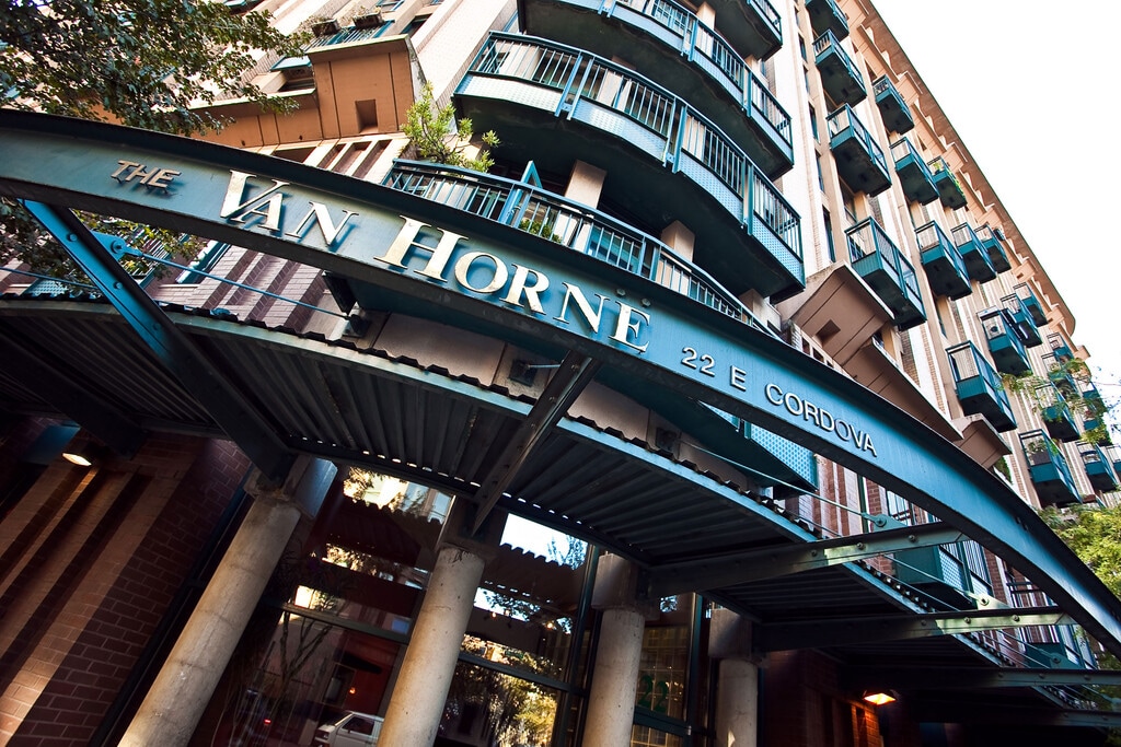 The Van Horne was built in 1997, with brick exterior to blend in with the surrounding cityscape of historic Gastown. This building is a reinforced 8-level concrete structure with single and double-height lofts totalling 166 units. Some loft features include 16ft ceilings, oversized windows with mountain views, secured underground parking, bike storage, balconies, and in-suite laundry. The building is just steps to everything you need, including Chinatown, Rogers Arena, Waterfront, and all the restaurants & shopping Gastown has to offer.