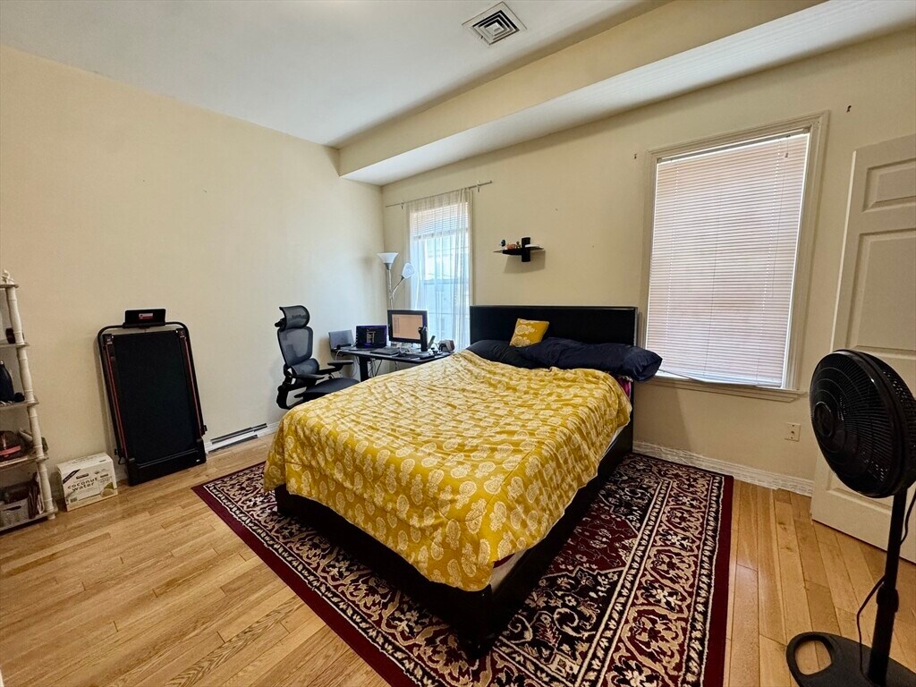 Available 9/1/25. Top floor Huge 1280 square foot 2 bed 2 bath with laundry in unit. This renovated unit features a large, open kitchen complete with newer cabinets, granite countertops and stainless steel appliances. The kitchen offers a gas countertop range, wall oven, dining area and hardwood floors. Large master bedroom with a walk in closet and private bath. Bedroom two is also large with 2 closets and a bath directly across the hall. Hardwood floors throughout. Private deck in the back. Easy street parking. Great deal!