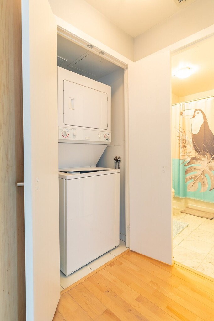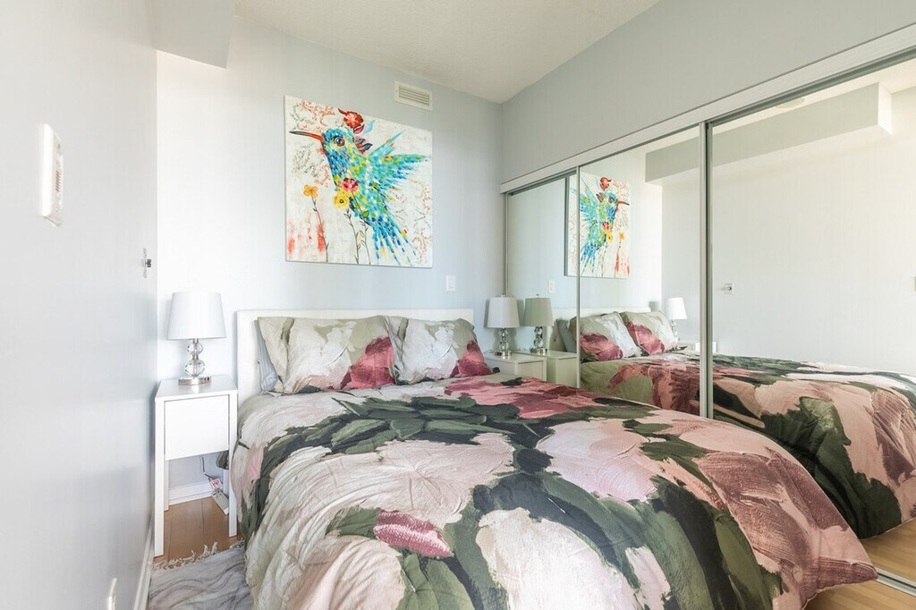 Experience luxury and feel at home in this beautiful 1-bedroom condo in the heart of downtown Toronto, offering amazing views from the 34th floor. This comfortable suite has everything you need. The fully functional kitchen is equipped with tea, coffee, a kettle, coffeemaker, and toaster. A washer and dryer are available with supplies. The bathroom includes towels, shampoo, conditioner, body wash, a hair dryer, and other toiletries. Parking is available in the public parking garage in this building. A travel crib (for babies 0-18 months) and bed rails are available for $5 per item per night. Pets are allowed with a maximum of two pets per suite for a fee of $10 per pet per night. Please confirm pet details prior to booking. Steps from the Air Canada Centre and Union Station, this apartment is within walking distance of the Skydome, CN Tower, Aquarium, and Financial District, as well as hundreds of restaurants. It's also close to the Eaton Centre and Queen Street fashion district, with easy access to the TTC and GO station. A grocery store, LCBO, and TD bank are conveniently located in the building. Every guest must provide their personal information prior to check-in, including the full names of every guest. Guests must be 18 or over to check in. Guests whose names or IDs do not match the provided information are not allowed into the building. For reservations of 28 days or more, access to the gym, indoor swimming pool, and hot tub is included. For reservations less than 28 days, all amenities (gym, pool, hot tub) are unavailable. Registration Number: STR-2011-GMQKVG [SI]