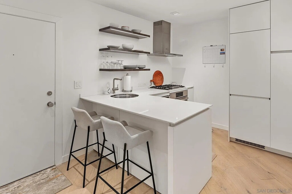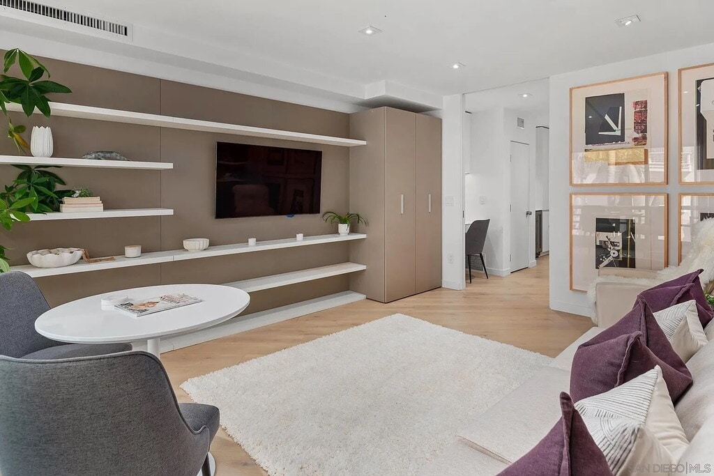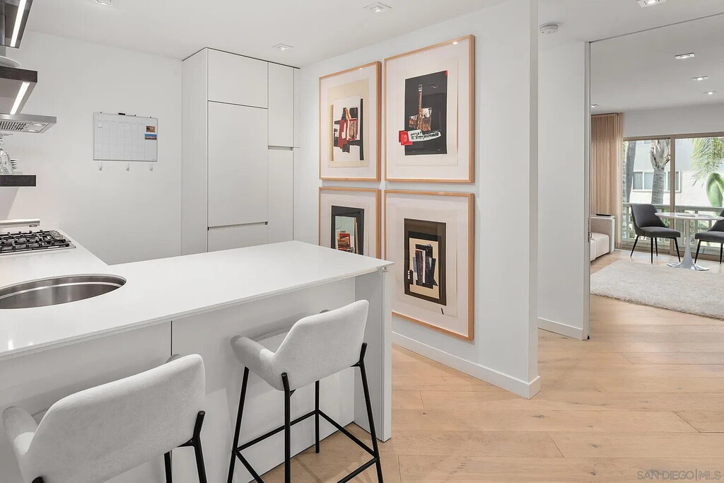 Welcome to this stunning, fully renovated oceanfront condo in La Jolla, offering unparalleled private beach access to enjoy swimming and breathtaking ocean sunsets. This elegant and fully furnished residence features modern European design throughout, providing a blend of sophistication and comfort. Enjoy the beautiful contemporary French oak flooring and luxurious Crema limestone bathroom. The living room can be transformed into a private bedroom with pocket door and hidden queen sized pulldown bed, offering a versatile option for guests. Dramatic views overlooking the famous “horseshoe” beach and surf break. Spectacular tides pools to explore during low tide. Walk to many restaurants and shops in the historic village. Recreation center/tennis courts, Museum of Contemporary Art San Diego are just around the corner and La Jolla village now boasts the new Conrad Prebys Performing Arts Center. University of California San Diego is minutes away. Fabulous pied-a-terre! – All furniture and appliances are included in the sale, making this a move-in-ready home. Just bring your suitcase and toothbrush—unpack and start enjoying your new oceanfront lifestyle
