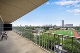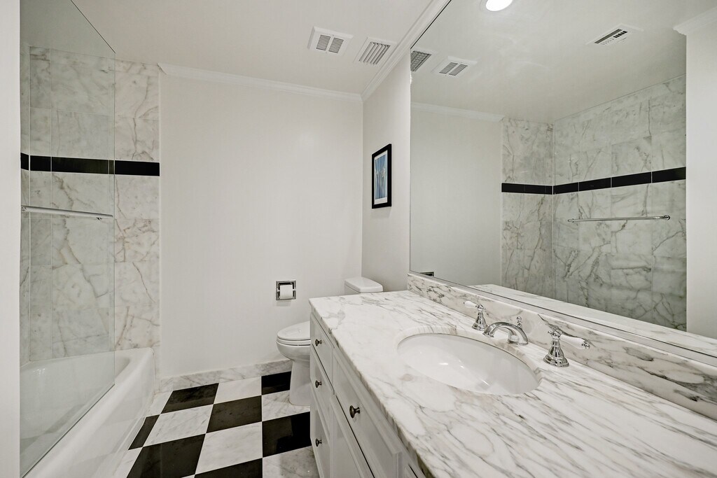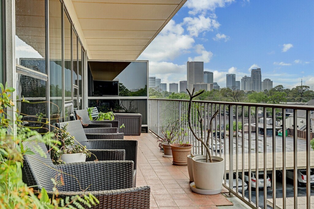 Live in the heart of Houston in upscale River Oaks neighborhood. Remodeled Contemporary European style 2 BD/2 BA sits on 4th floor facing north offers natural light & great views. Open concept floor plan feats: gorgeous kitchen w/ new hardware,floor to ceiling cabinets,quartz counter,peninsula,& wine cooler. Spacious primary bed & bath includes double-sink wood vanity,lighted mirrors,quartz counters,& walk-in shower. Secondary bed w/ 2nd bath across hall w/ preserved original marble vanity,marble flooring. Flex room added can be used as office or storage. Extending the entire length of unit,relax & entertain on outdoor balcony overlooking the pool. HOA includes all utilities,quarterly pest control & semiannual AC filter change. Amenities: grocery delivery to unit,pool,spa,fitness rm,party rm,outdoor kitchen & gas firepl,high spd internet,3 guest rms,concierge service,24/7 security. MLS# 82376031