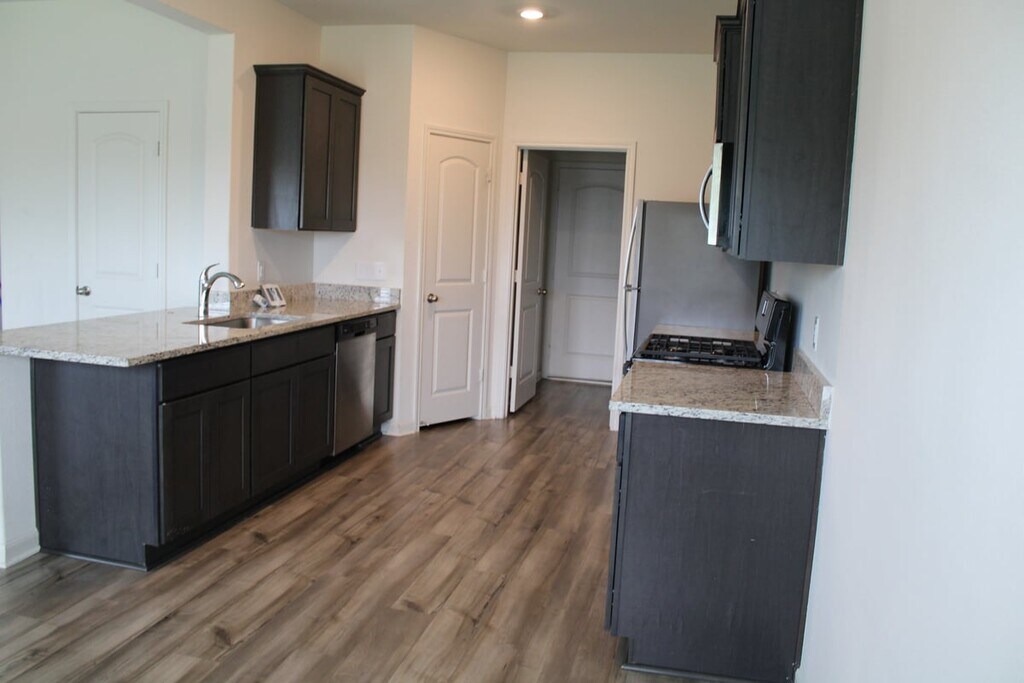 Spread out in this spacious two-story home! This 4-bedroom, 2.5 -bathroom beauty boasts ample living space with a large living room and kitchen, perfect for entertaining. Cook up culinary delights in the modern kitchen featuring stainless steel appliances, granite countertops, and sleek wood cabinets. The wood flooring adds warmth, and the upstairs bedrooms provide a private retreat. Unwind in the bathrooms adorned with stylish vanities, and enjoy the expansive backyard for barbecues, playtime, or simply relaxing under the sun.