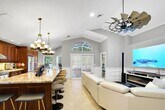 Property Id: 2414148 AVAILABLE April 1st. Experience resort-style living in the prestigious gated community of River Bridge. This meticulously updated single-family home offers an ideal blend of comfort, style, and functionality, featuring 3 bedrooms, 2 bathrooms, a 2-car garage, and an extended living area. Upon entry, abundant natural light floods the interior, accentuated by soaring vaulted ceilings and elegant large-format tile flooring throughout. The home boasts high-end lighting fixtures that enhance its sophisticated ambiance. The chef's kitchen is a standout, designed as a spacious open-concept space perfect for entertaining. It is equipped with premium finishes, including stone countertops, stainless steel appliances, and ample cabinetry for storage and preparation. Both bathrooms have been tastefully renovated to modern standards. The two guest bedrooms are generously sized and conveniently share access to the second full bathroom. Bathed in natural light from multiple windows, the master bedroom includes a luxurious ensuite bathroom featuring an oversized separate shower with upscale plumbing fixtures, complemented by a large walk-in closet with custom built-ins. Step outside to your private, screened-in paved patio--an ideal setting for morning coffee or evening relaxation amid peaceful surroundings. Additional conveniences include a full-size laundry room with a utility sink, direct access to the 2-car garage, and attic storage accessible via pull-down ladder. The Rent also includes high-speed internet, cable television, lawn maintenance, and full access to the community's exceptional amenities: multiple pools, basketball court, tennis and pickleball courts, shuffleboard, fitness center, and community room. Round-the-clock gated security with 24/7 guard presence provides added peace of mind. Don't miss this exceptional opportunity--schedule your private showing today. Listed by: Lemon Drop Realty